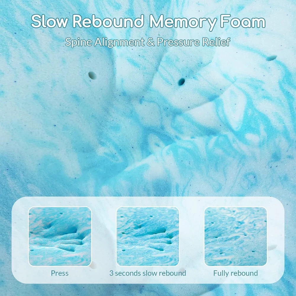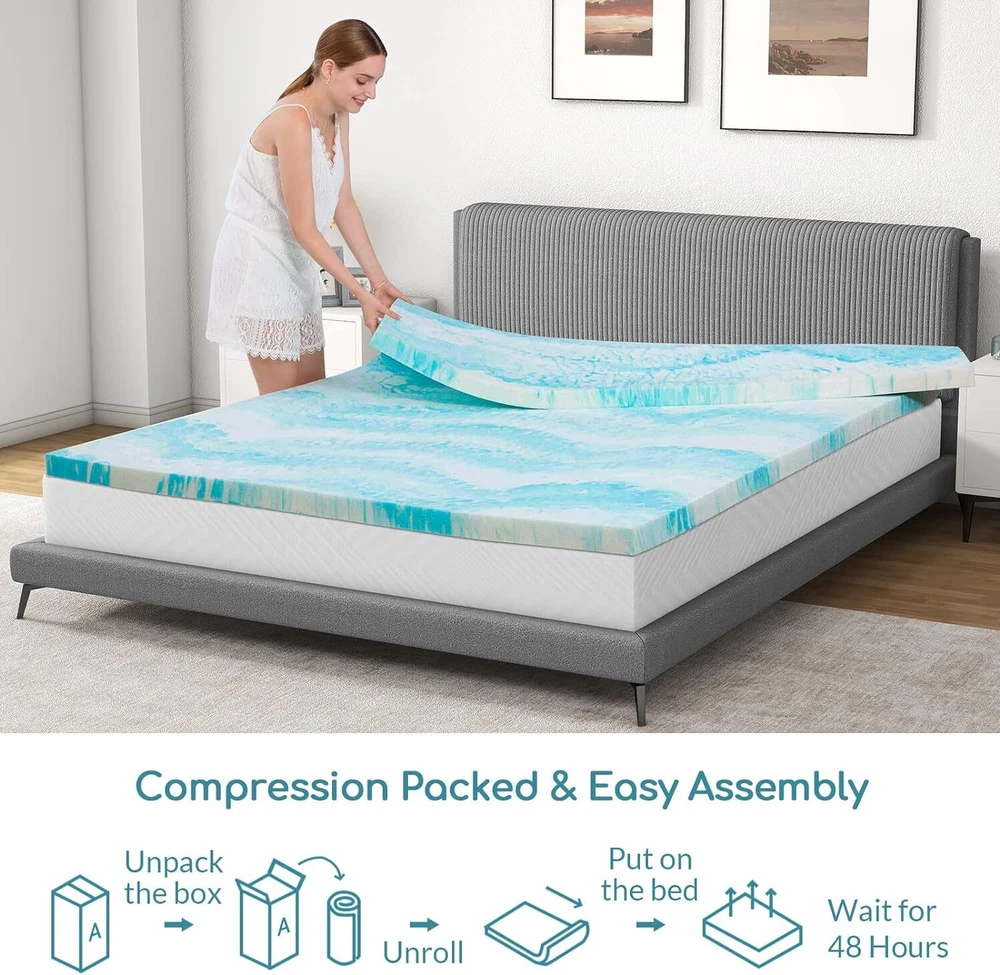Airdown Mattress Topper, 2 Inch Gel Infused Memory Foam Twin, Blue Product Details Brand: Airdown Color: Blue Size: Twin Fabric Type: Memory Foam Special Feature: Breathable Closure Type: Pull On Product Care Instructions: Spot Clean Only Water Resistance Level: Not Water Resistant Age Range (Description): All ages Material: Gel Memory Foam Model Name: Twin Mattress Topper Number of Items: 1 Manufacturer: Airdown Product Dimensions: 74 x 37.5 x 2 inches Item Weight: 7.93 pounds Item model number: AD-MF-2T Refill: foam, memory-foam, gel Batteries required: No Memory Foam 【Enhanced Comfort】- Revitalize your old mattress with our gel-infused memory foam mattress topper, providing an additional layer of comfort and support for a restful night's sleep. 【Pressure Relieving】- The gel memory foam mattress topper provides a comfortable sleep experience by conforming to your body's shape, distributing weight evenly, and reducing pressure points, resulting in less tossing and turning throughout the night. 【Breathable and Ventilated】- The gel infusion helps to dissipate heat, and the ventilated design allows for improved airflow, keeping you comfortable throughout the night. 【CertiPUR-US Certified】- Rest assured that the gel memory foam of the twin size mattress topper is CertiPUR-US certified, so you can sleep soundly knowing that it is performance tested and meets standards for content, emissions and durability. 【Easy to Install】- For added convenience, our twin foam topper is compressed and packed for easy transport and handling. After unpacking, please place the mattress topper in a ventilated place for at least 48-72 hours to allow it to rebound to its original shape and dissipate the new foam smell.
