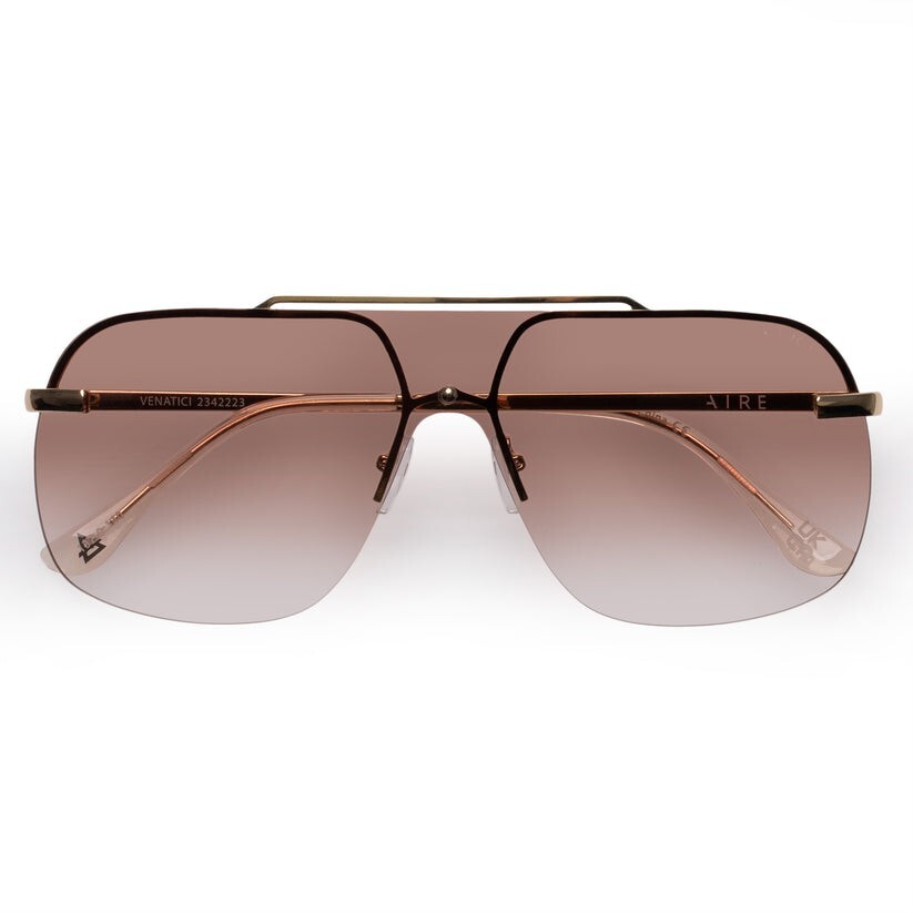 Elevate your style with these vintage-inspired Aire Venatici Aviator Sunglasses. The gold metal frame and brown lens combine for a timeless look that's both chic and classic. Perfect for women who want to add a touch of designer flair to their outfits, these sunglasses are a must-have accessory for any fashion-forward individual. With a nod to the iconic styles of the 80s and 90s, these sunglasses bring a touch of nostalgia to any outfit. Whether you're running errands or heading out for a night on the town, these Aire Venatici Aviators are sure to turn heads and make a statement.