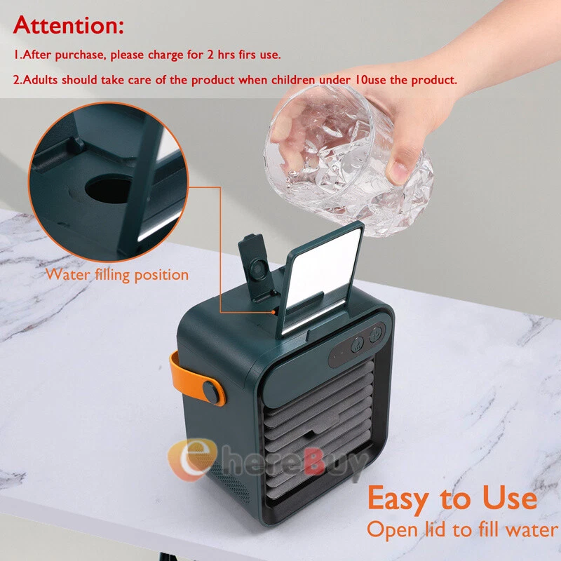 Aire acondicionado portátil USB con ventilador silencioso y 3 velocidades Green-3 Speeds Air Conditioning Fan w/ Mirror Feature: ✔ Fast Cooling: Portable air conditioner is a portable air conditioner that integrates cooling,humidification and purification,cooling you in hot summer and humidifying the air in dry autumn and winter. ✔ Low Noise Mode: The air conditioner fan has an adjustable air outlet(30°angle),which can work effectively at low noise level,without disturbing your work,study or sleep. ✔ Multifunctional Fan: The air conditioner fan not only has the function of spray humidification and cooling,but also can be used as a mobile phone holder and beauty mirror,allowing you to enjoy leisure time while watching movies and free your hands. ✔ Intelligent Wind Control: Portable air conditioner fans have 3 wind speed options,low energy consumption,uniform speed,simulates natural wind,and provides the confort you need-low,medium or high speed. ✔ USB Rechargeable: The air conditioner fan has a built-in-2400mAh battery,which can be used for 5-8 hours when fully charged,and the included USB data cable can be plugged into any available USB port(laptop,desktop,power bank)to power the air conditioner fan. ✔ Easy to Carry: The air conditioner fan is light in weight,with a carrying strap,you can carry it with you,it is perfect for home,office,car,outdoor,camping and it is also a must-have small fan for your office and living room. Specification: Product name:Mini Air Conditioning Fan Producy model:F80 Color:Green Material:ABS Input current: 1A Rated power: 3W Input voltage: 5V 3 Speed:High/Medium/Low Wind Speed Water Tank Capacity: 150ml Charging input:5V-1000ma Battery capacity:2400mAh Plug interface: Type-C Use time: 3-5 hours Product size:125*150*85mm/4.92*5.91*3.35inch Product weight:420g Package include: 1x Air conditioner fan(built-in battery) 1x User manual 1x USB charging cable 1x Packing box Desk Tower Fan Feature: -- Quiet Operation: Made of high-quality ABS material, durable, The fan adopts vortex cross-flow technology, which makes the noise quiet and comfortable, suitable for work and rest. -- 3 Wind Gear: USB rechargeable, the tower fan has 3 levels of wind power adjustment,the wind gentle and stable, 360° multi-angle supine design, air outlet can be adjusted as desired. -- Stable Base: The base is designed with silicone pads, which can be placed horizontally or vertically and have a good anti-slip effect, so the fan will not tip over on the desktop. -- Wide Application: Desktop tower fan can be easily placed on the table, suitable for outdoor sports, camping, fishing, backpacking, and also very suitable for home and office. Specification: Product model: E2 Color: White Material: ABS Rated power: 3.5W Rated voltage: 5V-1A Winds gear: 3 Power supply mode: USB Battery capacity: 1800 mAh Product size: 6*8*27cm/2.36*3.15*10.6inch Package includes: 1*Desktop Fan 1*Power Cord 1*Instruction Manual 1*Packing Box White-Bladeless Neckband Fan Feature: ✔ 3 Speeds: The neckband fan has a left and right dual-turbine design, 60 fan blades to enhance the wind power, with 3 grears adjustable, first gear breeze, second gear natural wind, third gear strong wind, low noise, sustainable use for 18 hours. ✔ Lightweight Design: The hanging neckband fan is small in size and light in weight, the neckband fan is as light and portable as an earphone and can be hung on the neck, it will not feel tired after hanging it for a long time, at the same time, it will not heat up, it will not curl your hair, it can prevent dust and sweat, and say goodbye to dust accumulation. ✔ Hands-free and Portable: The hanging neck bladeless fan has a foldable design, which can flexibly adjust the wind direction of 150° and can be easily carried in a bag, it can not only provides comfortable neck protection, but also can free your hands and enjoy the cool wind. ✔ Wide Range of Uses: The hanging neckband fan has a Micro USB interface, it can be quickly fully charged in 3 hours, very suitable for summer, barbecue, walking, mountain climbing, hiking and other activities, and also a companion for travel and outdoor sports. Specification: Product model:H11 Product name:Bladeless neckband fan Color:White Material:ABS+PC Input voltage:DC 5V-1A Power:3W Gear: third gear Charging time:3-4 hours Battery cell:Lithium-ion battery(built-in) Battery capacity: 5000mAh Power supply: USB Usage time:3-18 hours(depending on the seevice at different levels/usage scenarios) Weight:About 245g Product size:208(L)*206(W)*62(H)mm/8.2*8.1*2.4inch Package includes: 1x Fan 1x Use Manual 1x Micro-USB Charging Cable 1x CPE Bag 1x Packing Box Desk Fan Features: * Using the brush and slotless motor,to ensure the high winds and long-life. * Intelligent control system,reliable performance. * Using the international standard 18650 capacity lithium batteries. * USB rechargeable :Support computer and other other USB port charging. * High-quality LED light: LED lamp tube, no flicker, good helper for emergency power failure. * Mini & portable: Light weight makes it easy to carry.For Home, Office, Travel, Camping, Outdoor, Indoor Specification: Battery: 18650 battery Material: ABS Life time: 6 hours Speed type: three-speed Product size: 14*10.5*3.5cm Color:black Cable size:16.4cm Package Includes: 1 x Fan 1 x Data cable Payment Delivery details About us Contact us Terms of sales Payment * PayPal,VISA,Credit Card & eCheck accepted. * Payment should be expected with 7(Seven) days after bid. We appreciate prompt payment and unpaid items will be filed for Final Value Fee if payment not received in 7 days. Delivery details Shipping available time: Mon. - Fri. exclude holidays Orders will be shipped out within 1 business day (unavailable on weekends & holidays).Once it is shipped, the tracking number will be sent to you for your tracking. For the domestic orders, it is expected to reach you in 2-5 business days. We Ship to Payment address ONLY. So pl