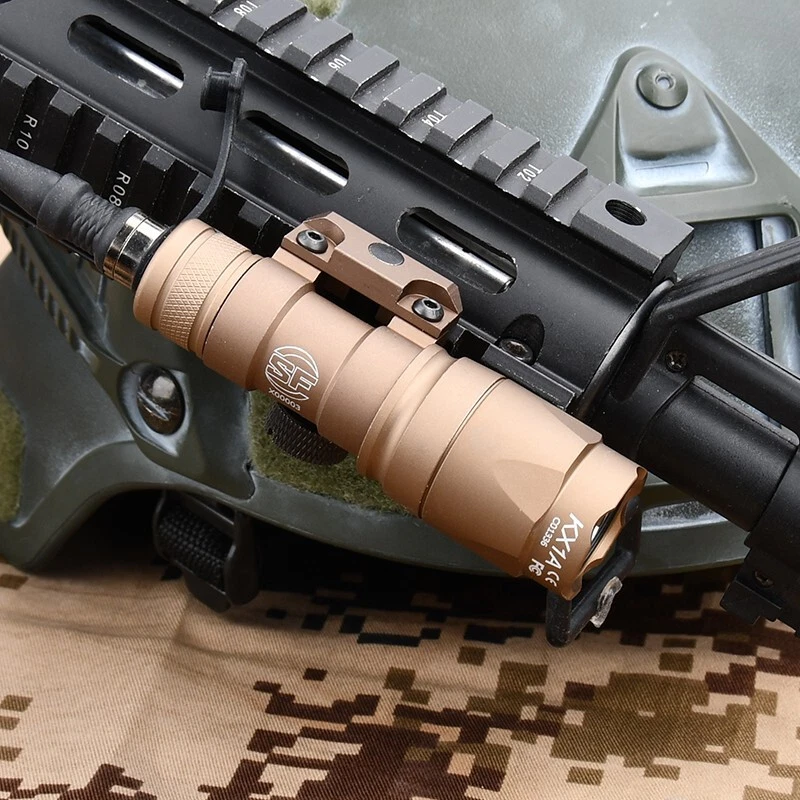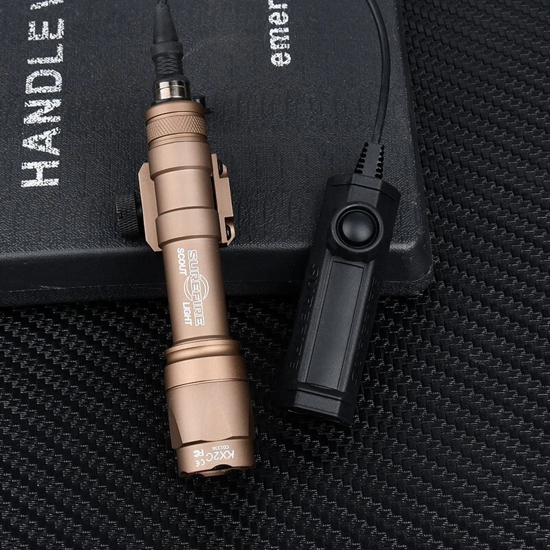 WADSN Tactical SF M600 M300 Airsoft Flashlight Weapon Light Dual Functiom Pressure Switch Rifle White LED Hunting Lamp Model: M300 M600 Flashlight Color:BK / DE Material:Aluminum alloy/Nylon plastic Flashlight Fit:20mm Picatinny Rail Switch Fit:20mm Rail Brightness:M300(510 Lumens)/M600(600 Lumens) Battery:16340 Or CR123A (Not included) Function:Momentary/Constant