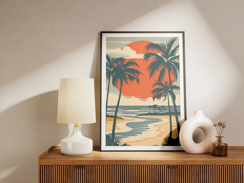 Alabama Gulf Coast Sunset Palm Trees Vintage Beach Art Print Wall Decor Home Decor Tropical Poster Material: Premium luster photo paper Print type: Inkjet printing One side printed + The finish provides the highest possible resolution and color saturation + Lasts up to 200 years in color and 400 years in black-and-white + Printed on high-quality resin-coated photo base paper medium + Posters can be hung with double-sided tape, tacks, or framed + Hand washing with a gentle cry cloth is recommended for extended durability I will hand select the best choice of paper for your chosen design to ensure top quality results for a beautiful, bright and luxurious print. All prints are sealed in cellophane slips for protection during transportation, and are shipped in a protective cardboard envelope.