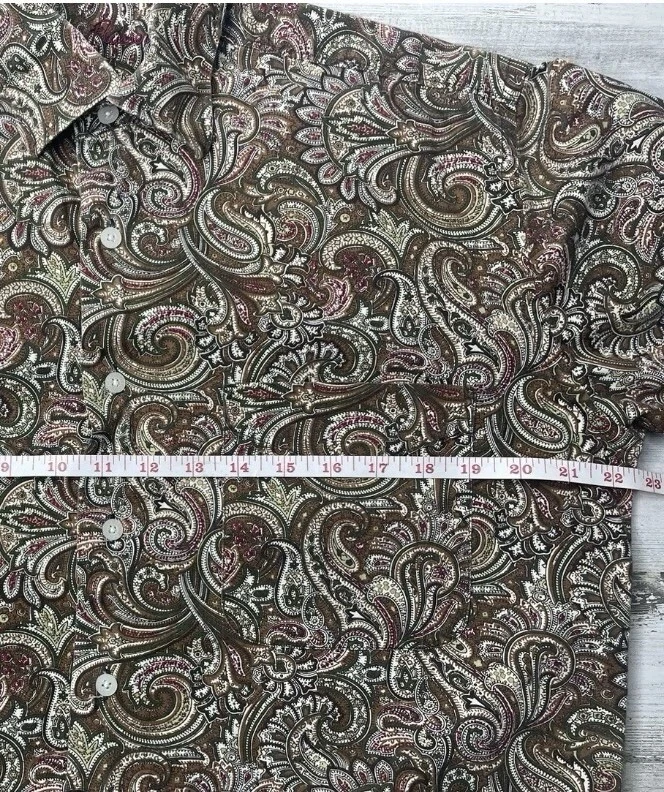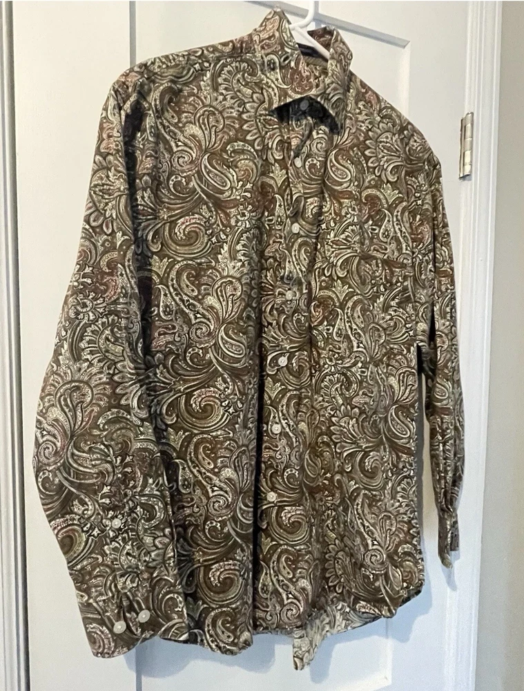 Alan Flusser Floral Button Up Long Sleeve Shirt Brown Tan Men’s Size: Small EUC! No Warranty or Returns. Only ship to 50 states, Virgin Islands, Guam & PR. Please pay purchase within 3 days. Feedback is highly appreciated, but please contact us before giving bad feedback. Our goal is for customer satisfaction!! Message us with any questions!! Thank you very much for looking!