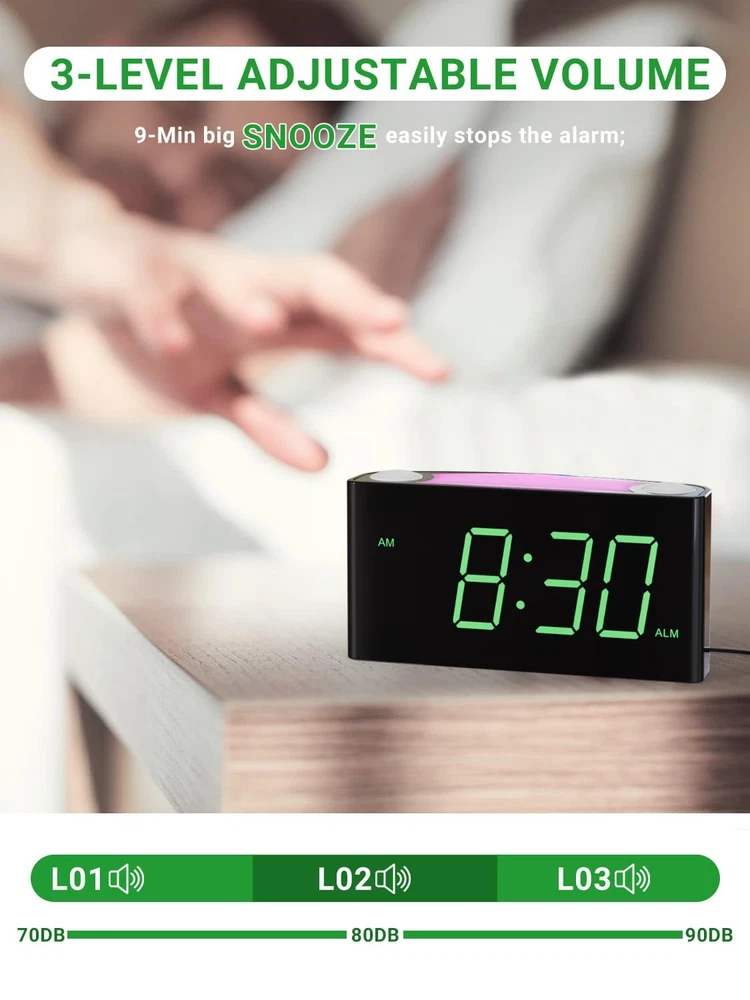 Alarm Clock Large 7" Digital LED Display 7 Colored Night Light Slider Dimmer