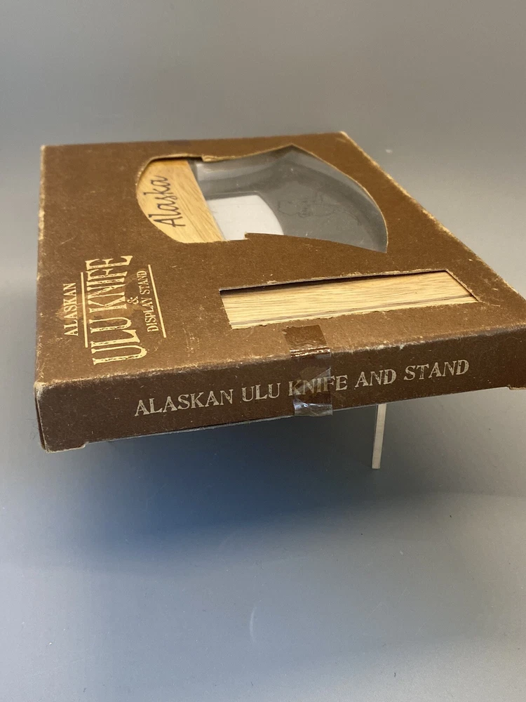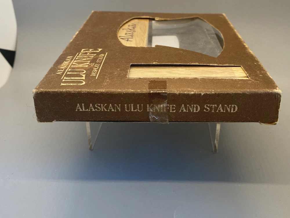 Authentic Alaskan Ulu Knife and stand. Made with durable stainless steel and easy to clean features, this Ulu Knife set includes a stand for safe storage and display. There are designs on both the blade and handle makes this a perfect gift for any occasion. Great for chopping or slicing. Easy on the hand.