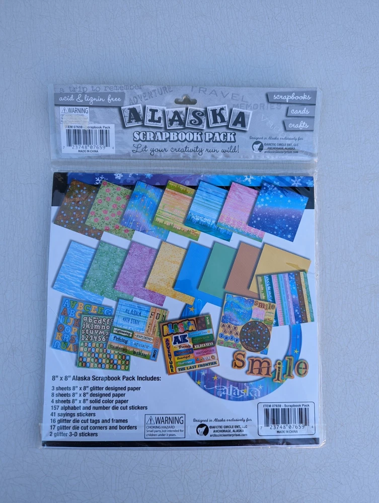 Alaska Scrapbook Kit Alaskan Acid Free Scrapbook Paper & Stickers *248 Pieces. Such fun and unique styles. Packaging may have slight imperfections such as price tag residue but they are new and sealed. Please see photos. You are buying the exact item shown.