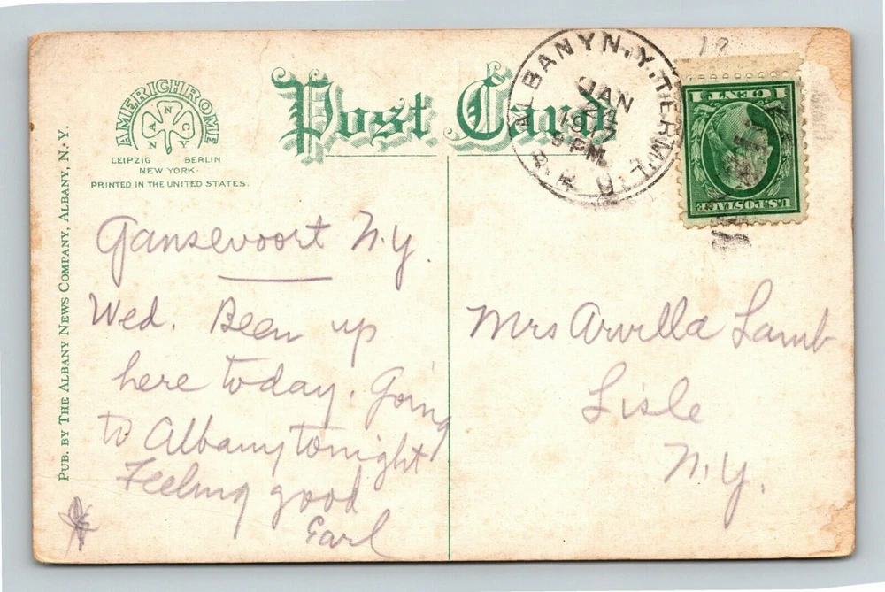 Unit of Sale: Single Unit Type: Printed (Lithograph) Region: New York Country: USA Era: Divided Back Country/Region of Manufacture: Unknown Original/Licensed Reprint: Original Postage Condition: Yes City: Albany Subject: Cities & Towns Theme: Cities & Towns Year Manufactured: 1918
