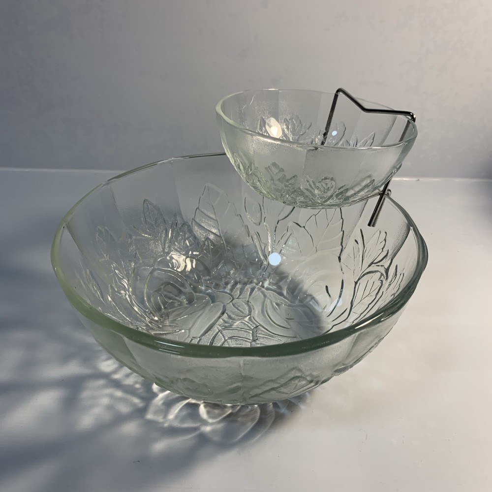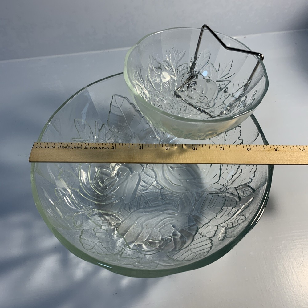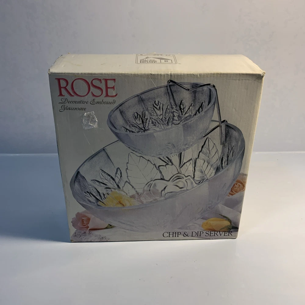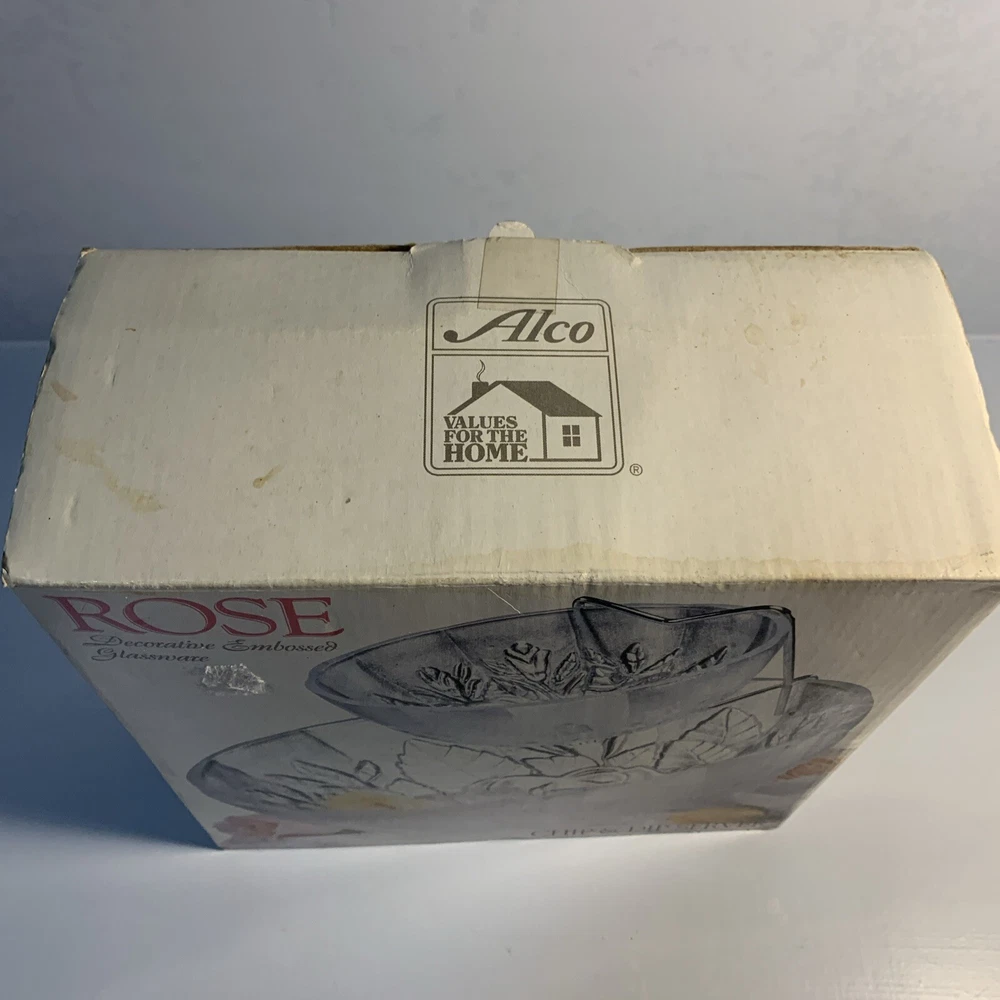 UP FOR SALE: Alco Rose Decorative Embossed Glassware Chip & Dip Server in Original Box Will securely ship via the USPS from my smoke free home. I offer both Priority and Ground Advantage Shipping. Please reach out with any questions.