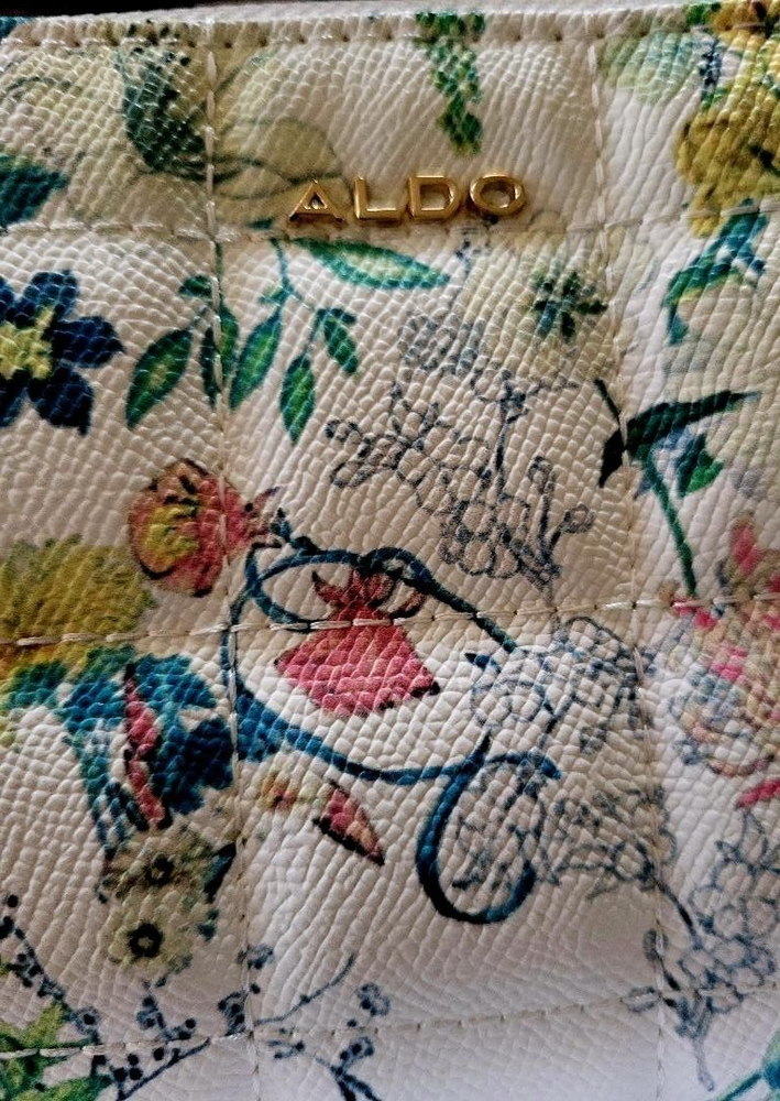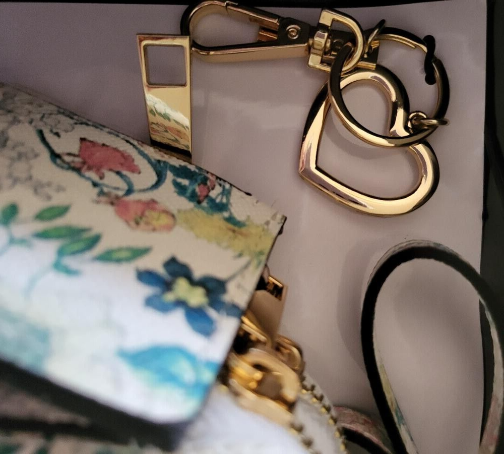 Aldo Floral Wallet/ Purse w/ Strap & Heart Key Chain In Original Box, Never Used 8" across