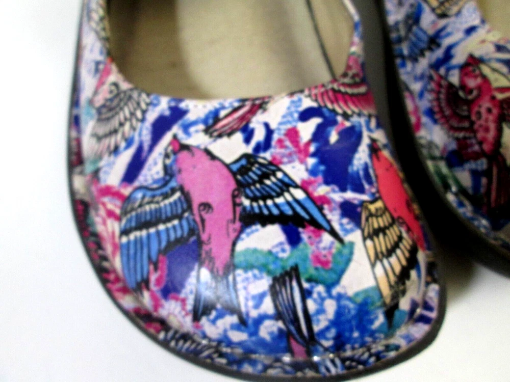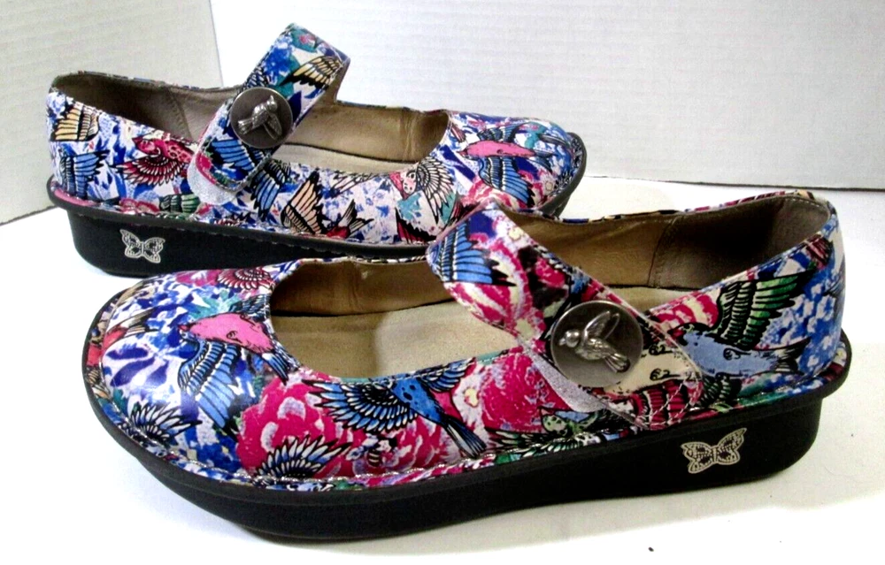Step into a world of comfort and style with the Alegria Paloma PAL-219 Mary Jane shoes. These charming multicolor shoes feature a delightful bird pattern that brings a touch of nature-inspired beauty to any outfit. Crafted with a premium leather upper and a comfortable leather lining, they're designed for women who value both fashion and well-being. The size 37 shoes (US size 6.5-7) offer a secure fit with a practical strap/velcro closure and are finished with a modest 1.5-inch heel for a slight lift. The durable manmade outsole ensures long-lasting wear. Whether you're heading to the office or enjoying a casual day out, these Alegria Paloma shoes are a versatile addition to your footwear collection.