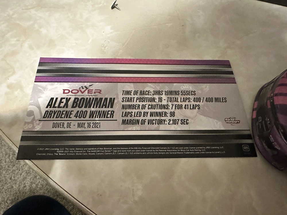 Alex Bowman 2021 Ally Dover Race Win Elite 1:24 Diecast.