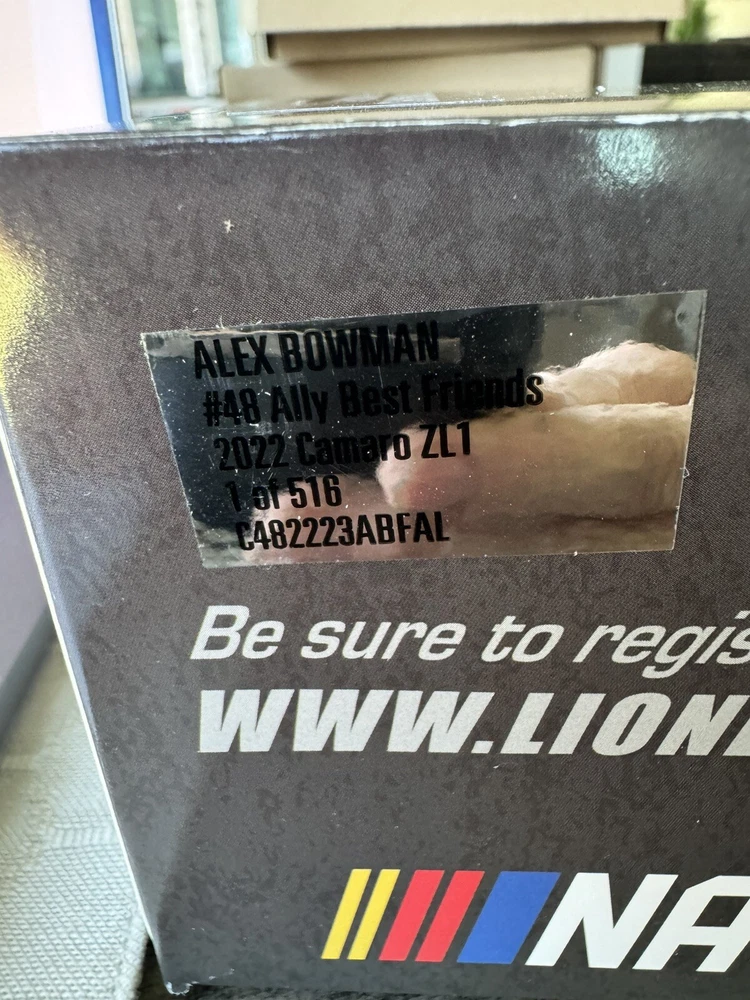 Alex Bowman 2022 Autographed #48 Ally Best Friends Nascar Lionel 1/24 Diecast. this car is in excellent condition and is 1 of 516 cars made. Only removed from box to take photograph. Autographed car and has COA from Pristine Auctions.