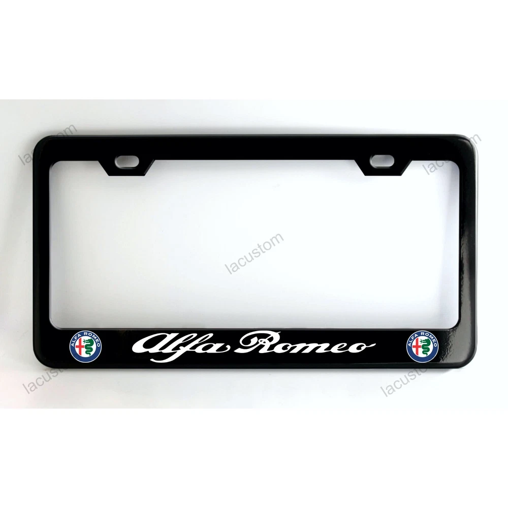 Alfa Romeo BLACK LICENSE PLATE FRAME CUSTOM MADE OF POWDER COATED METAL STANDARD FOR U.S. & CANADA YOU CAN ALSO CUSTOMIZE YOUR OWN FRAME LET US KNOW IF YOU HAVE ANY QUESTIONS - buy with confidence -