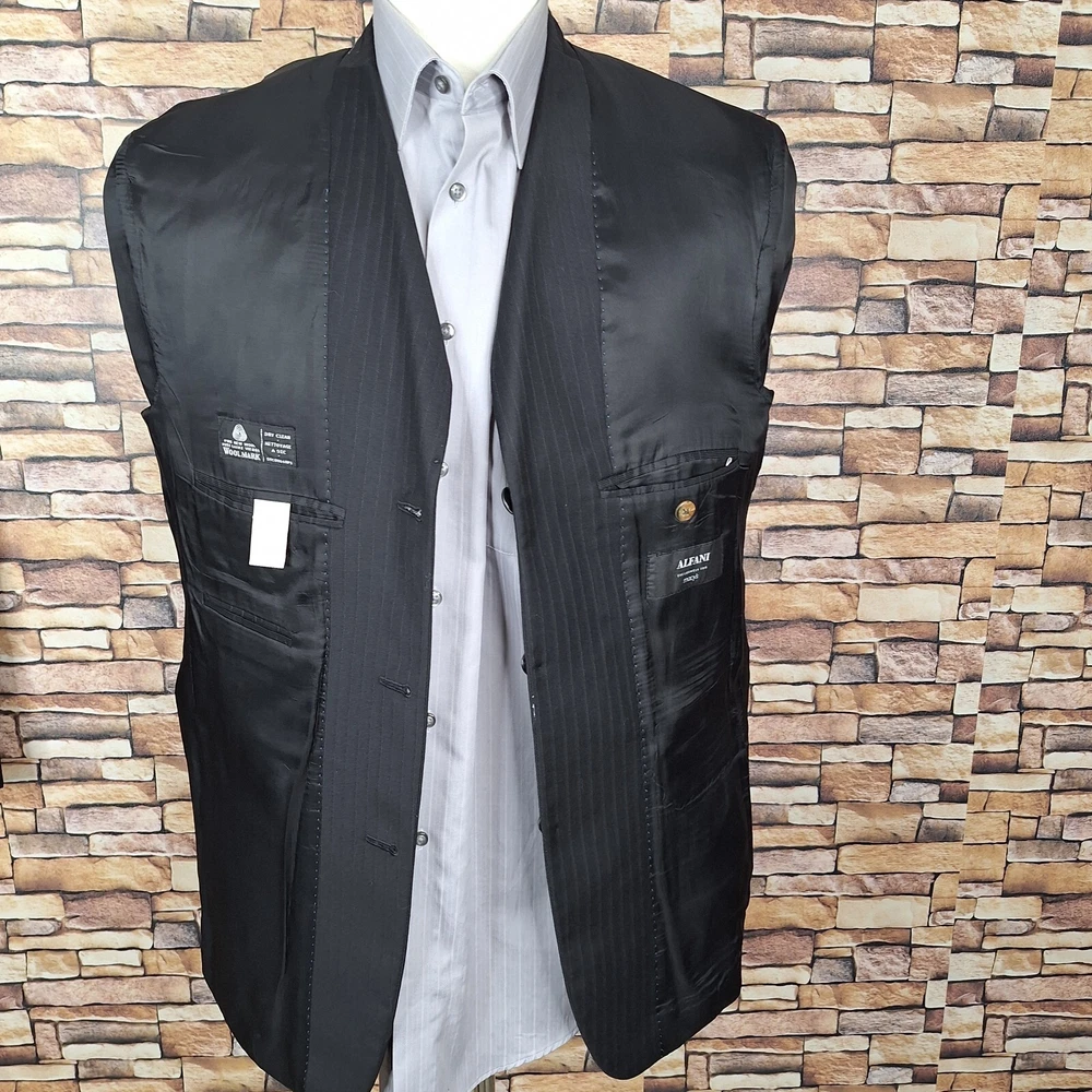 Alfani 2 Piece Suit Mens 40R 34X32 Black Stripe 3 Button Ventless Wool Canada Quality used condition. Please check out the measurements before buying to ensure a perfect fit. Shirt Size on Label 40R Shoulder- Hem 31.00'' Shoulder- Shoulder 19.00'' Shoulder- Wrist 25.00'' Armpit- Armpit 21.00'' Mid Button 21.00'' Everything ships within a day. Feel free to message me with any questions. Thank you very much. 12/16/24 Pants Pleated Cuffed Lined Quality used condition. Please check out the measurements before buying to ensure a perfect fit. Pants Size on Label Seam (Outer) 43.00'' Waist 34.00'' Waist- Crotch 12.00'' Inseam 32.00'' Extra inseam fabric 1.20'' Everything ships within a day. Feel free to message me with any questions. Thank you very much. 12/16/24