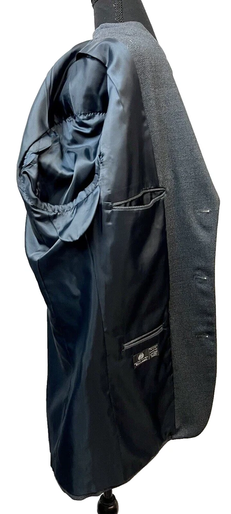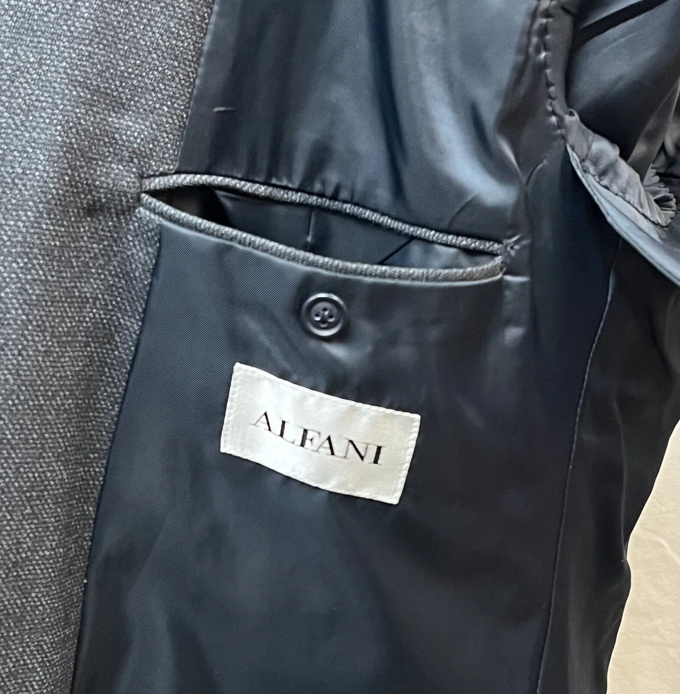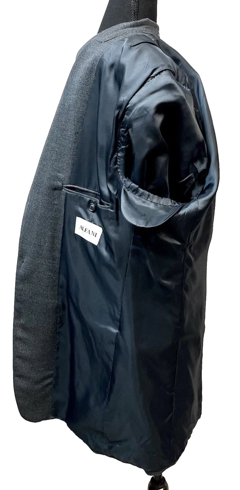 Elevate your style with this sophisticated vintage Alfani blazer. Crafted from high-quality new wool, this textured solid blue blazer is perfect for any occasion, whether it be a wedding, party, or business meeting. The blazer features a notch lapel style, four-button sleeve buttons, and a ventless design. With inner pockets and shoulder pads, this blazer not only looks great but is also functional. The blazer is pre-owned but has been well-maintained and is in good condition. Available in size 44 Long this classic fit blazer is perfect for any man looking to add a touch of elegance to his wardrobe. CONDITION Preowned Good condition It has a tiny FLAW in the upper back shoulder See pictures for details and measurements Please contact us with any questions or concerns. Thanks!