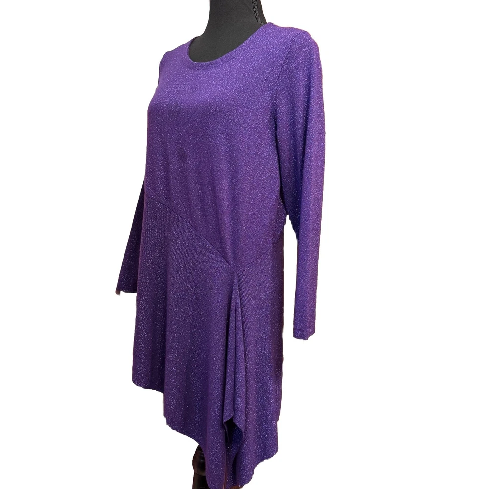 Alfani Blouse Medium Womens Tunic Top Purple Sparkle Asymmetrical Hem Glam . Condition is Pre-owned. Shipped with USPS Ground Advantage.