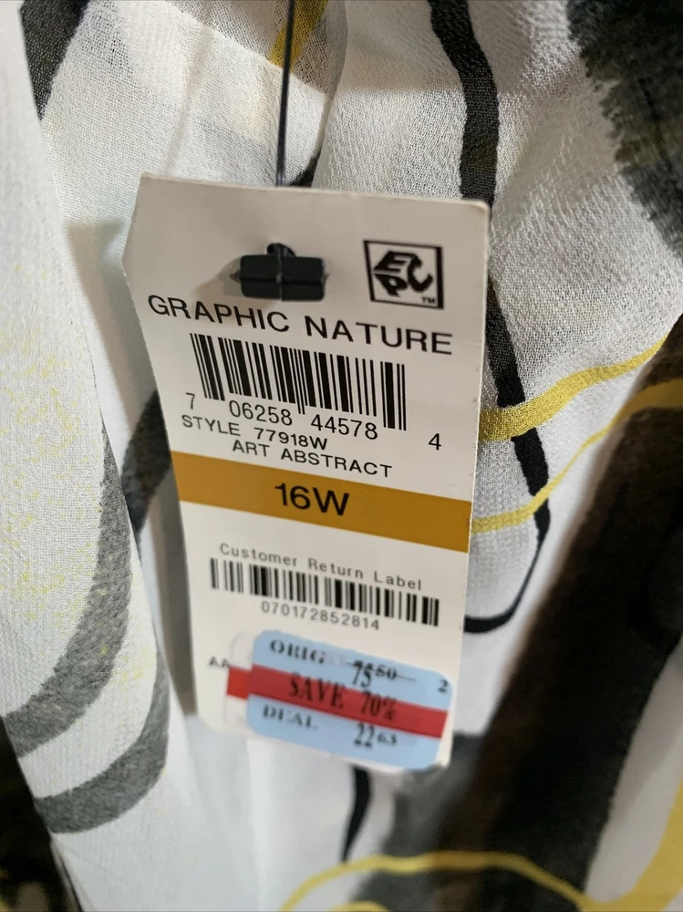 Alfani Graphic Nature Dress Art Abstract Shirt/dress Size 16W NWT $75 Read Fully. Beautiful long top/mini dress (if you dare!) - I think best worn w black leggings!! This items defect is that it has makeup at the collar- shown in photos. I did not wash, as it’s new with tags, but item will need cleaned prior to wearing. Price greatly reduced due to this minor flaw! $75 retail - 2 layers, great looking piece.