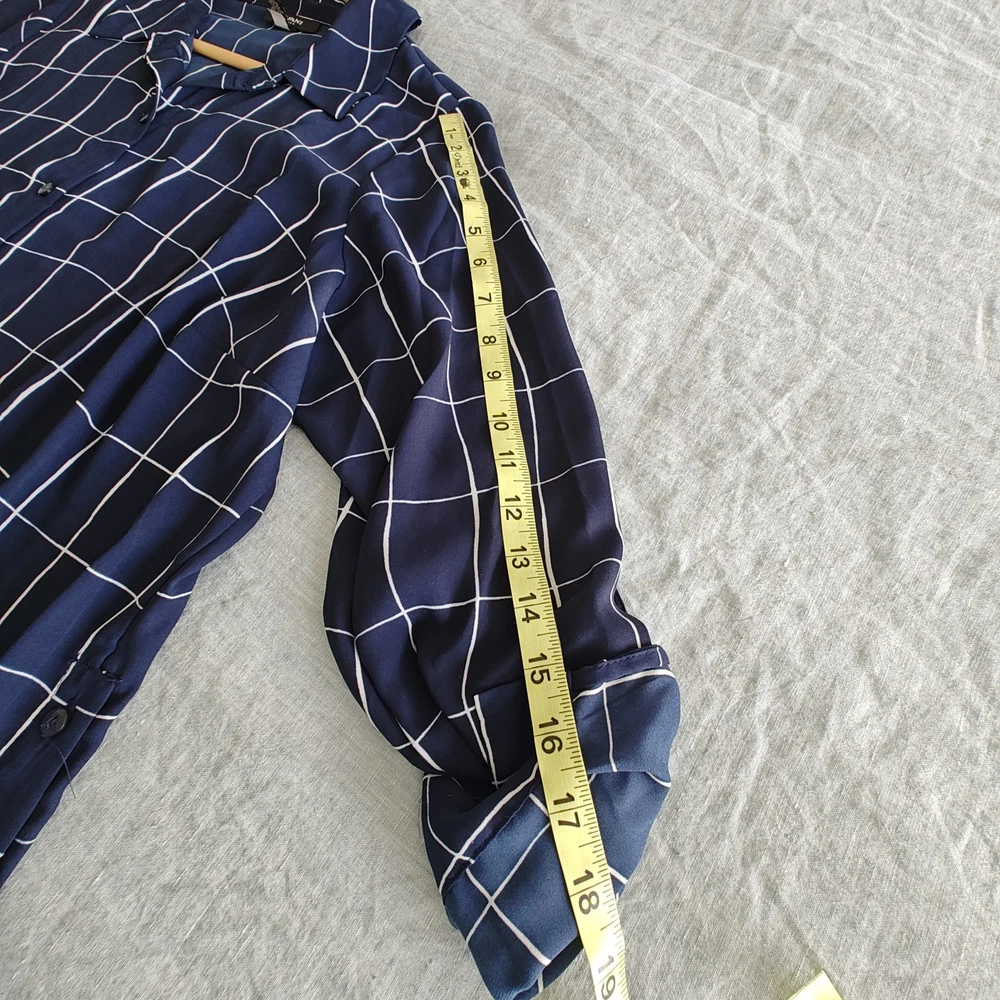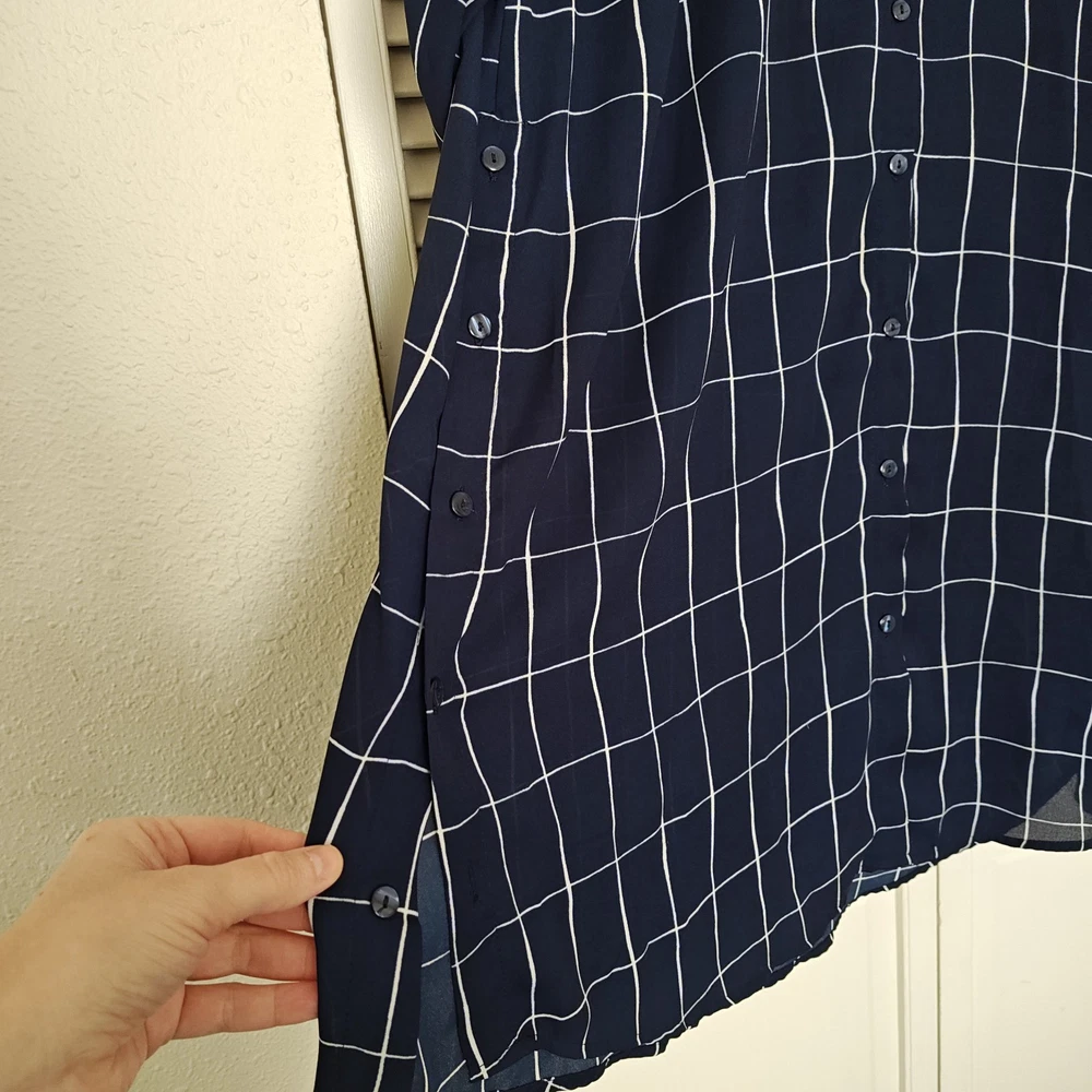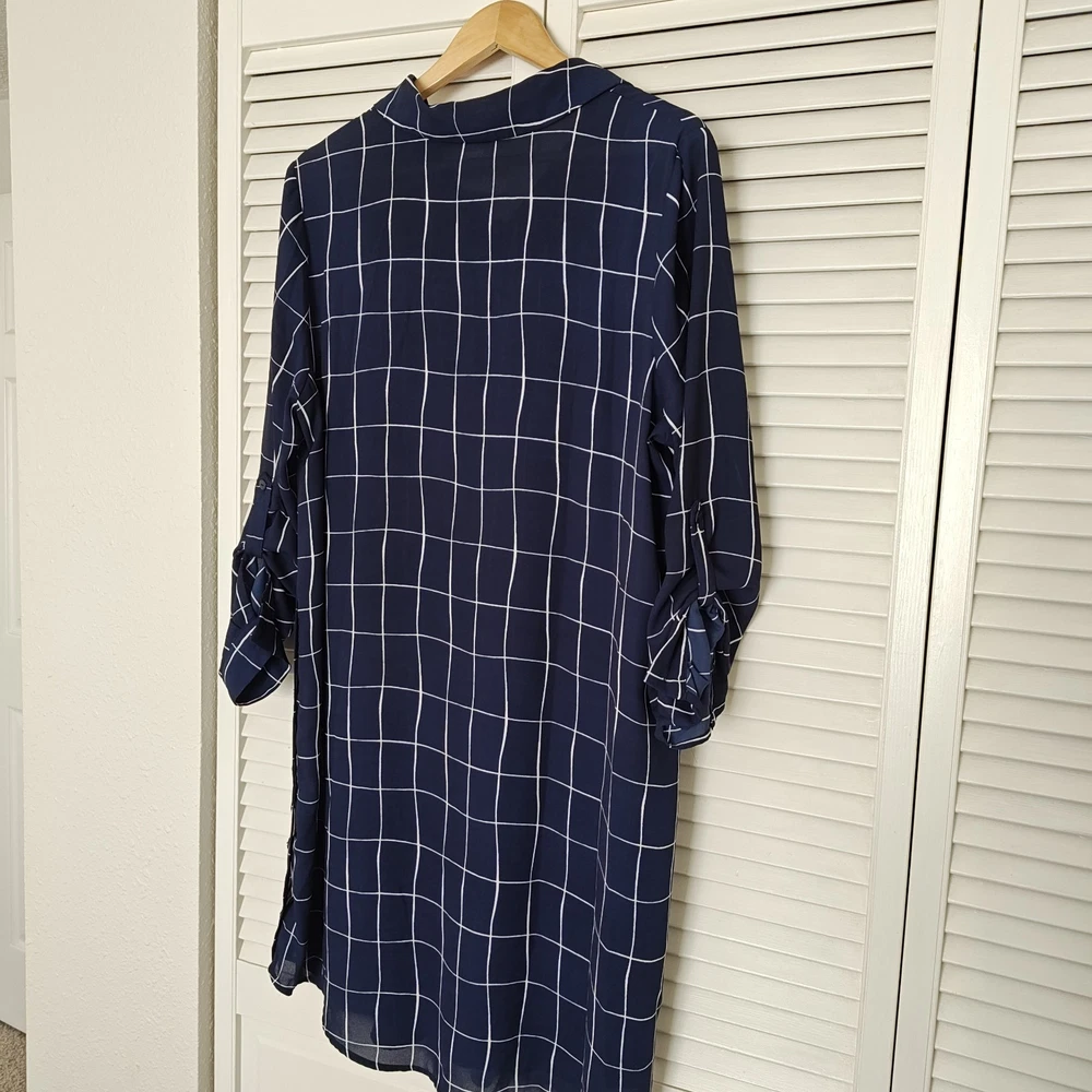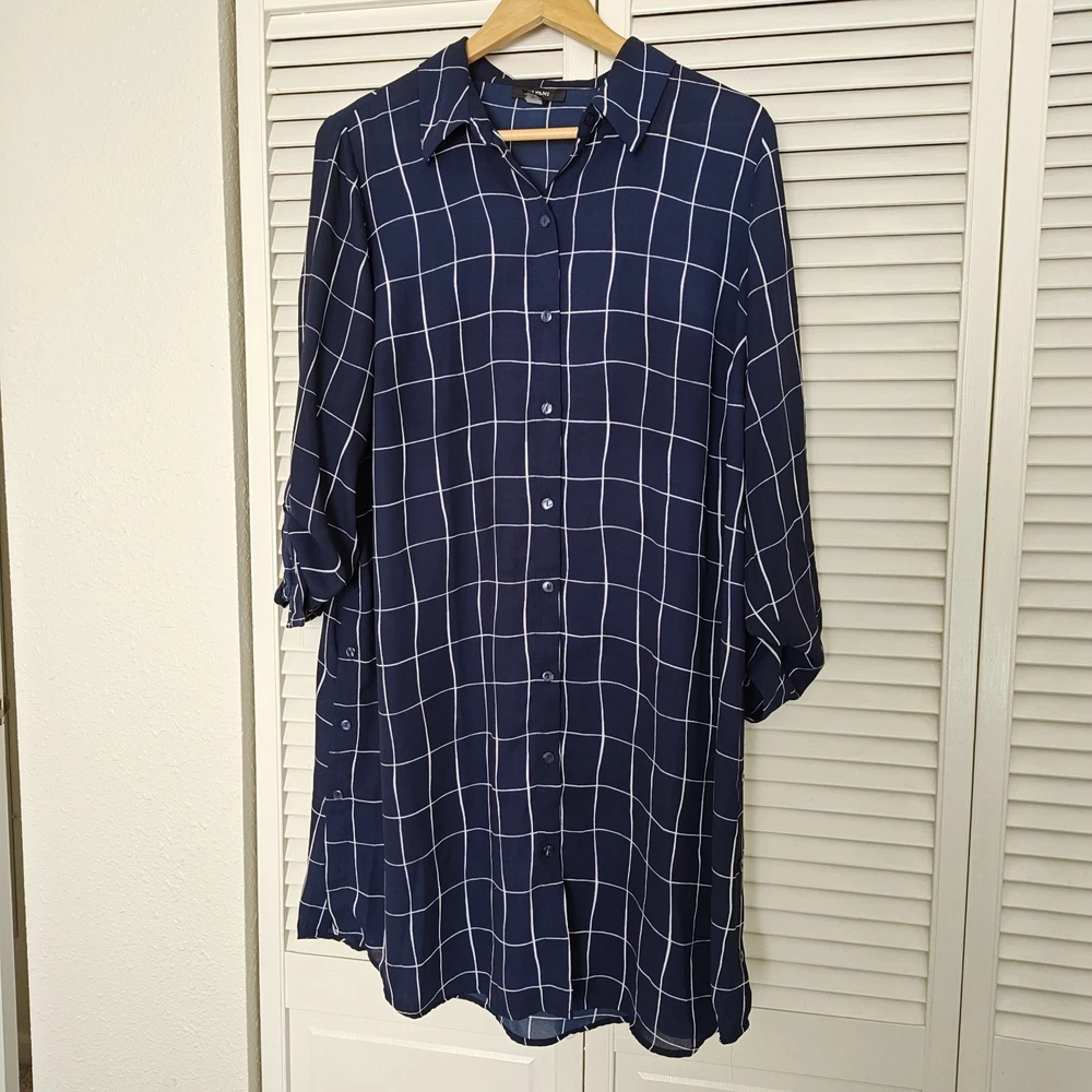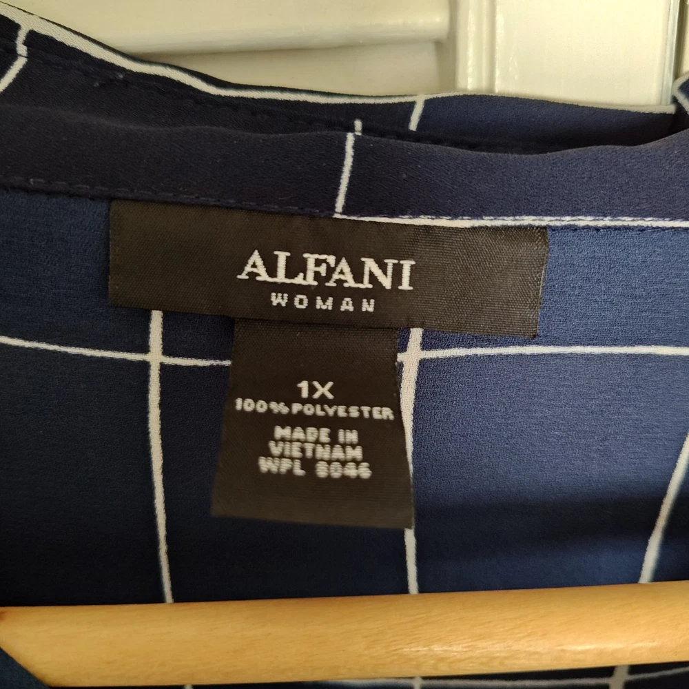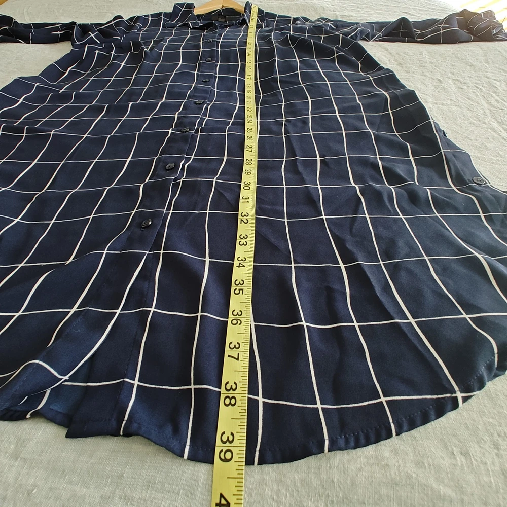 Alfani Women's 1X Navy Blue Sheer Tunic Top Shirt Dress Button Up Geometric Excellent condition with no flaws. Thanks for looking!