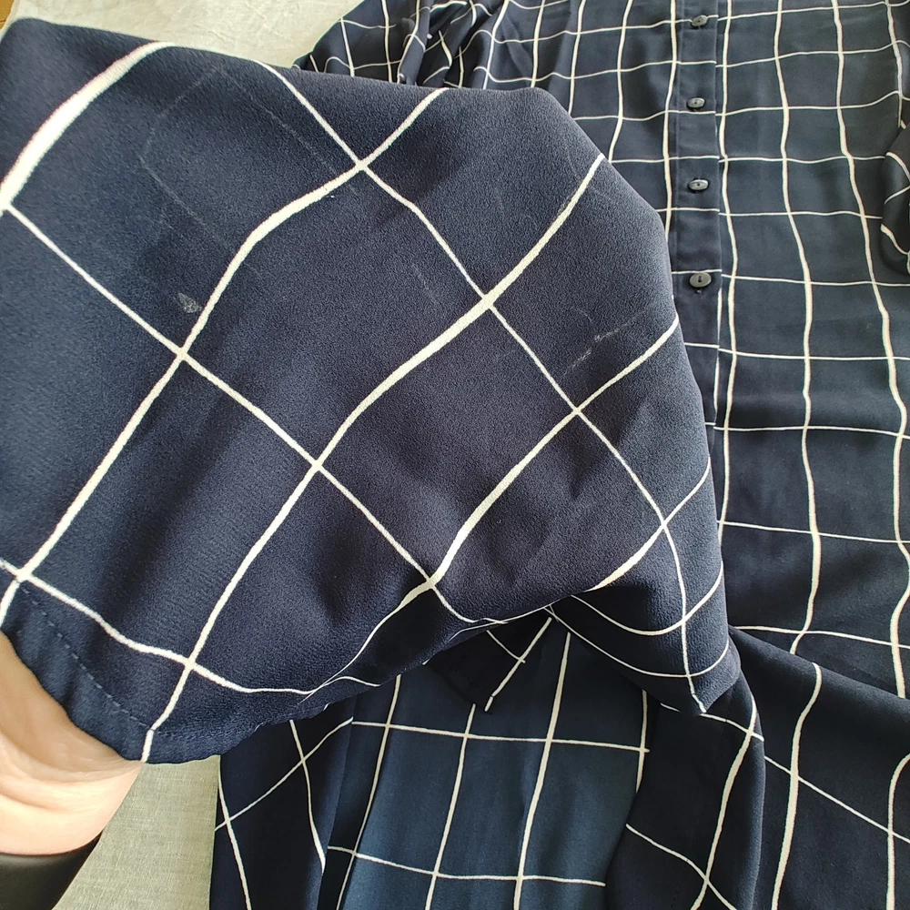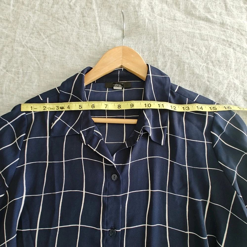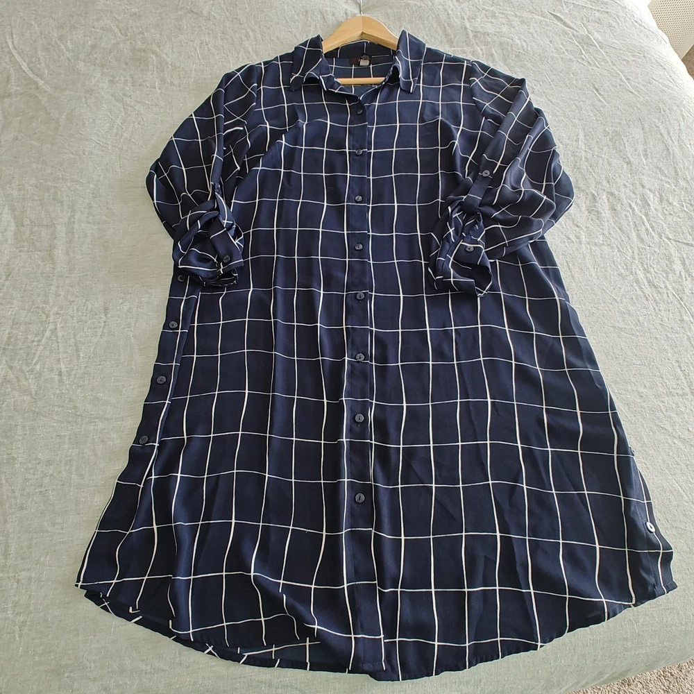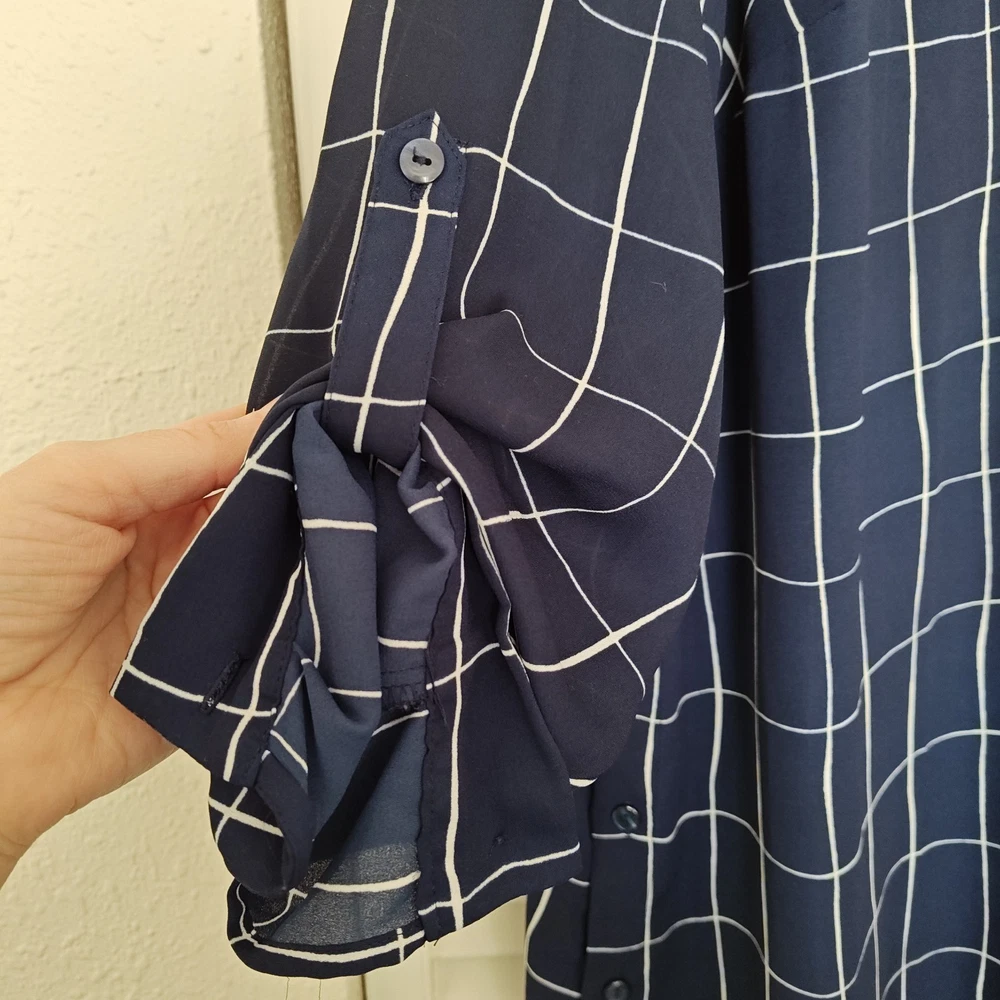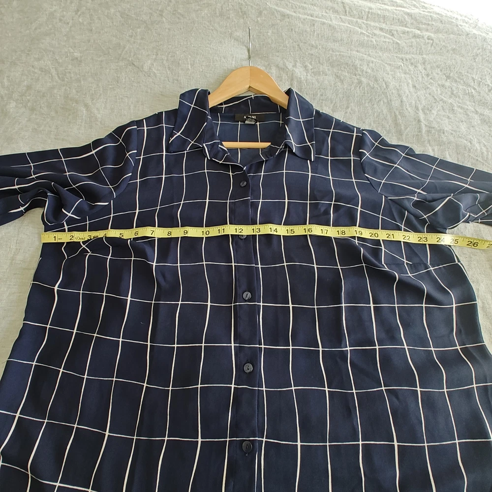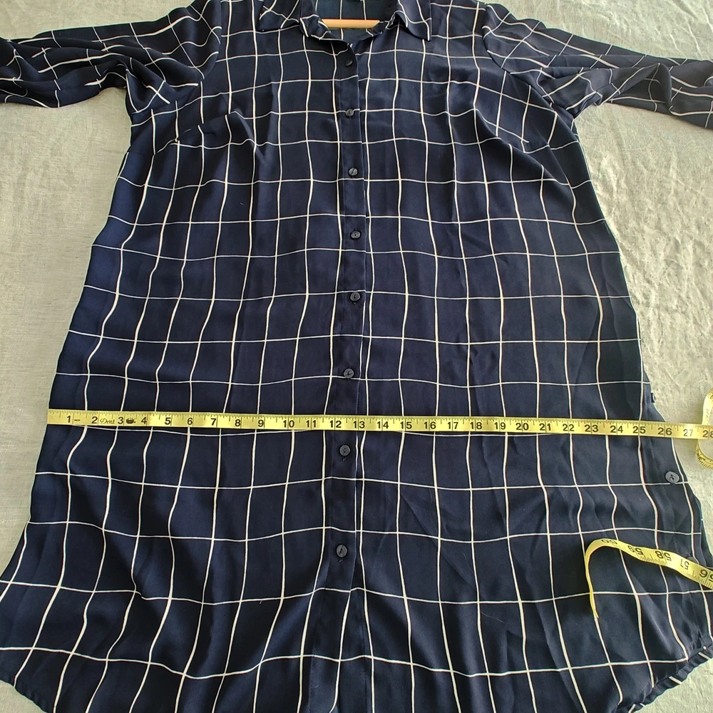 Alfani Women's 1X Navy Blue Sheer Tunic Top Shirt Dress Button Up Geometric Excellent condition with no flaws. Thanks for looking!