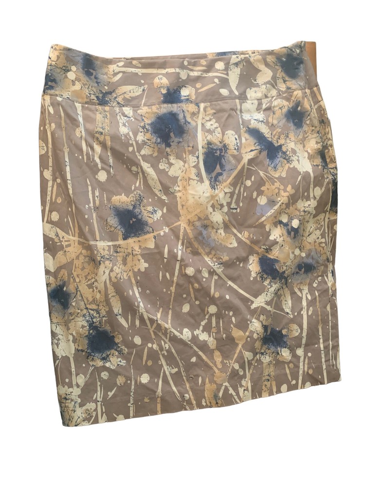 Alfani Women's Straight Skirt. Size: 12. Length- 22". Waist-32". Slit (Still Stitched)- 6.5" Features & Accents: Tan Background with Mainly Blue and White Abstract Paint Splashes Overall. Side Zip Closure, Back Center Slit (Still Stitched Closed), Cotton Spandex Blend. Condition.New, No tags. Smoke Free Home. Same day shipping if purchased by 3:00 PM, EST. International Sales Ship through Ebay International Shipping Program. Free Returns. We truly try to disclose all information on items we list. However if we miss something, please contact us before leaving negative feedback and allow us to resolve the problem or issue a returns. Your choice. Thank you.