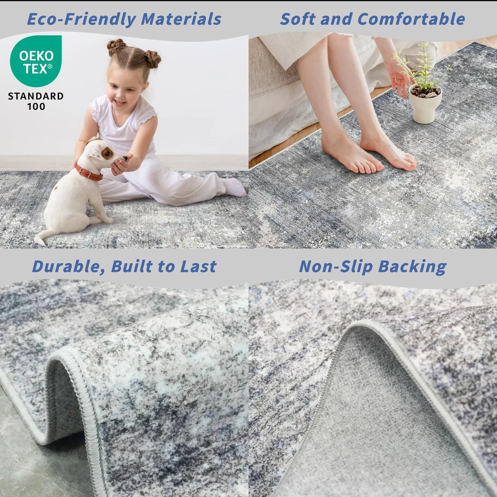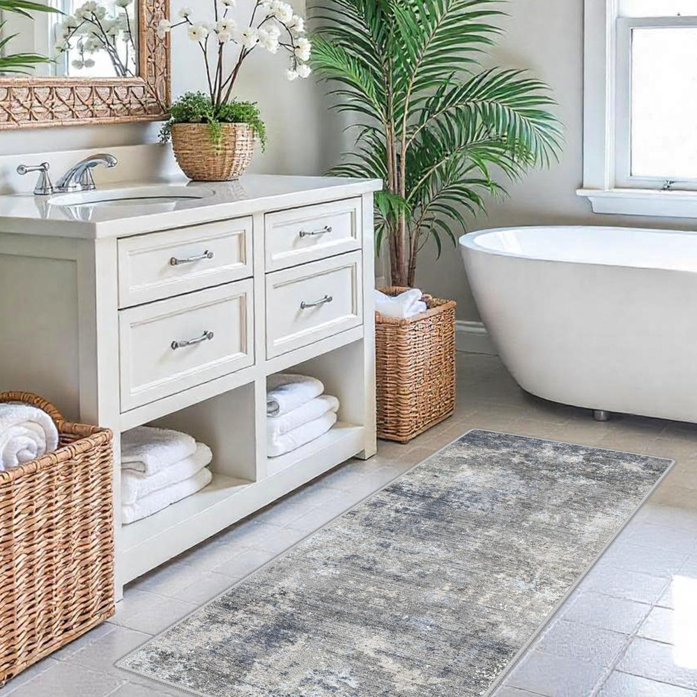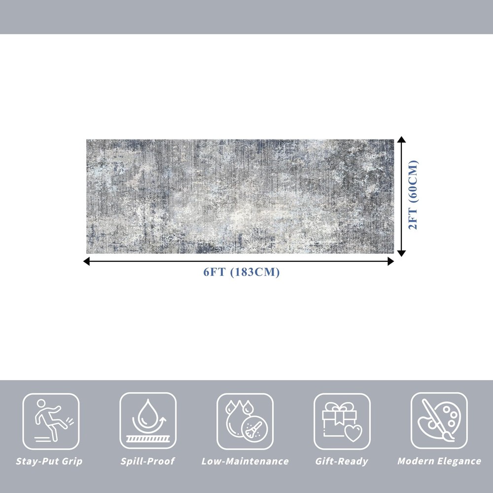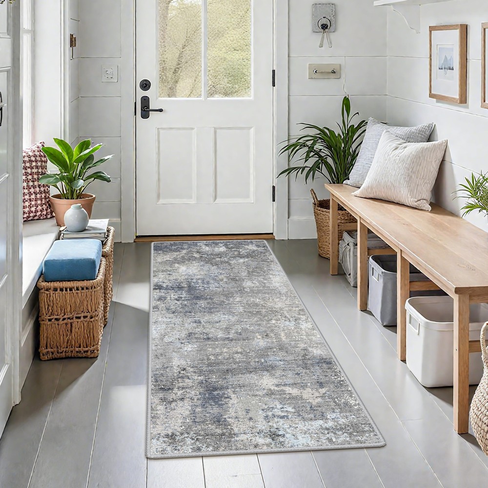 2x6 Washable Non-Slip Blue Grey Runner Rug – Modern, Stain-Resistant & Perfect for High-Traffic Areas Enhance your space with this 2x6 ft washable runner rug, designed for hallways, kitchens, bedrooms, bathrooms, and entryways. The modern blue and grey tones create a stylish and calming aesthetic, perfect for those who love contemporary, minimalist, or coastal-inspired décor. With its low-pile, stain-resistant fabric, this rug offers durability and easy maintenance, while the non-slip backing ensures stability in high-traffic areas. This blue-grey runner rug is ideal for homeowners, renters, and design enthusiasts looking to add a touch of sophistication and warmth to their interiors. The subtle abstract pattern blends seamlessly with modern, boho, Scandinavian, and transitional styles, making it a versatile piece for any home. 🎁 Looking for a unique and stylish gift? This rug makes a perfect housewarming, birthday, or holiday present for anyone who appreciates elegant home décor. Whether for a new apartment, a cozy bedroom refresh, or a hallway upgrade, it’s a thoughtful and practical gift choice. Designed for comfort, durability, and easy maintenance, this 2x6 ft blue-grey runner rug is pet-friendly, hypoallergenic, and safe for kids. Whether placed in a kitchen, laundry room, entryway, or bedside, it provides a soft yet durable surface while enhancing your space with cool, sophisticated tones. Upgraded Non-Slip Grip – 2x6 Non-Slip Blue Grey Runner Rug for Hallway, Kitchen, Entryway, and Bedroom: This non skid washable 6ft runner rug features an upgraded textured backing that keeps it securely in place, even in high-traffic areas like hallways, kitchens, entryways, and bedrooms. Designed for homes with kids or pets, it prevents shifting and offers a stable, slip-free surface that helps protect your floors from scratches while ensuring safety and comfort Machine Washable – Easy to Clean and Maintain: This 2x6 blue grey runner rug is machine washable, stain-resistant, and spill-resistant—perfect for high-traffic areas. Simply wipe away everyday messes or toss it in the washing machine for a deep clean. Its low-pile design allows for easy vacuuming and quick drying. Soft, Comfortable & Family-Friendly – Oeko-Tex Certified:Made from soft, low-pile fabric, this hallway runner is Oeko-Tex Standard 100 certified, ensuring it’s safe for families. Non-shedding and fade-resistant, it’s an ideal choice for any space that needs durability and comfort. Modern Abstract Design – Perfect for Coastal, Minimalist, Boho & Scandinavian Décor: This washable 2x6 runner rug features a modern abstract design in cool blue and gray, seamlessly complementing various interior décors. Its neutral tones blend effortlessly with light wood, white, gray, or navy furnishings, adding sophistication to your space Notice the Fold – Easy Crease Removal:For cost-effective shipping, this 6-foot runner rug may arrive folded. Simply lay it flat, weigh down the creased areas, or use a steam iron on low with a damp cloth. Rolling it in the opposite direction also helps smooth out wrinkles