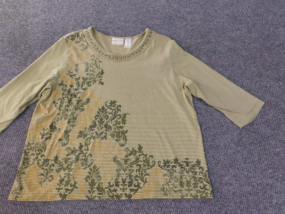 The multi-item bag came quickly and in great condition. There was an issue with this blouse which the seller hadn't seen - and they refunded the entire cost when I brought that to their attention. No hesitation - I didn't even ask for a refund, they just said they'd refund the price. Everything this seller carries is nice, or what I have purchased so far. I will return to this store every so often for quality clothing and browse the other selections. Thanks - again.