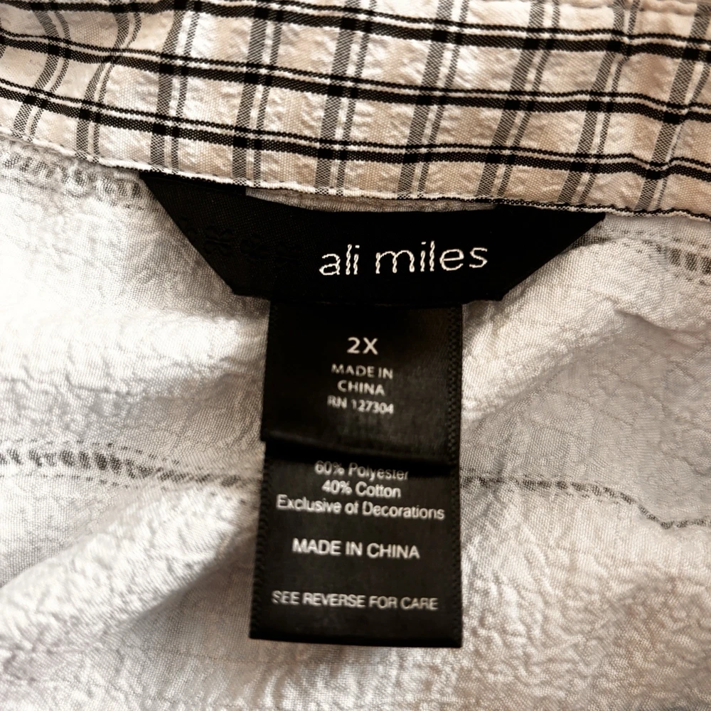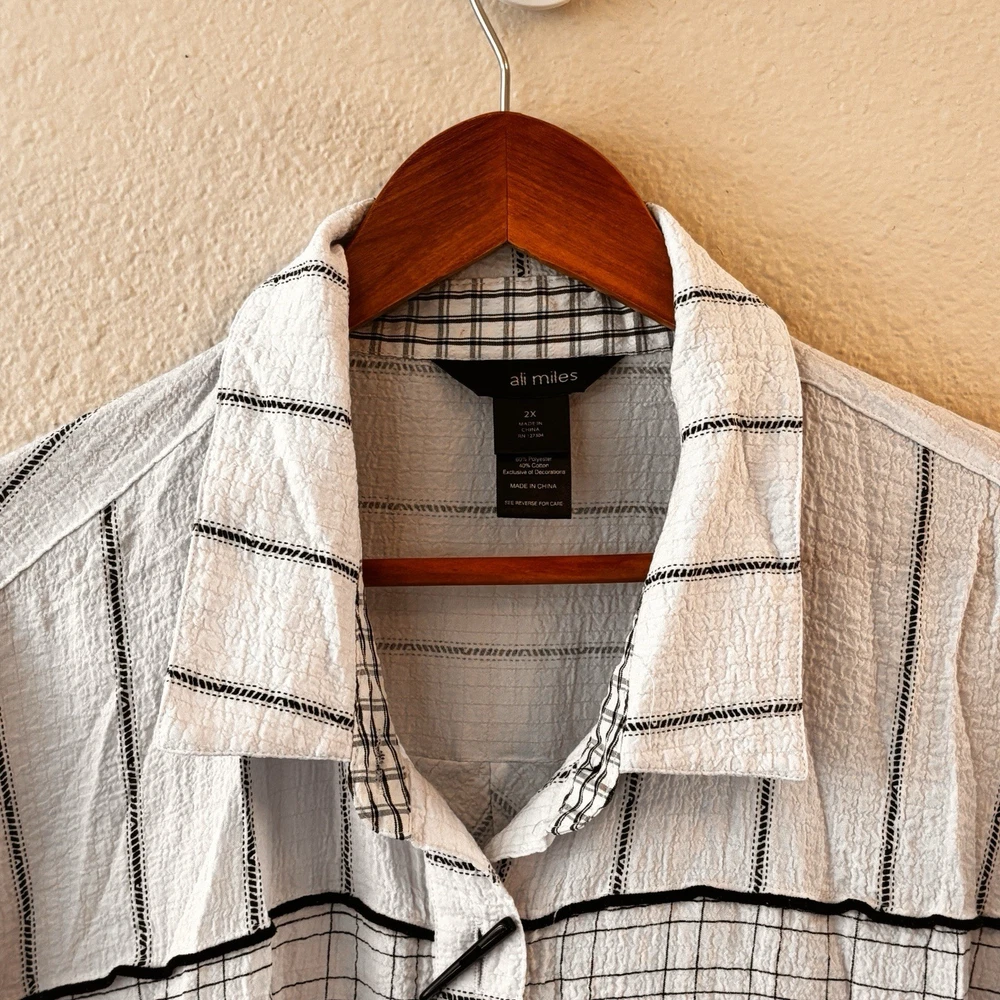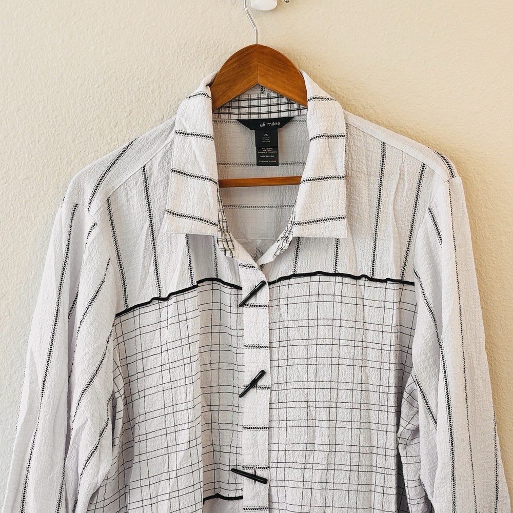 Ali Miles Abstract Graphic Tunic Top 2X Lagenlook Art to Wear Roll Tab Sleeve Style tags: artsy, boho, bohemian, travel, eclectic No flaws Non Smoking home
