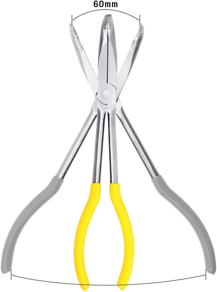 【USO】Diseño de alcance extendido para llegar mejor a áreas confinadas. Las mandíbulas dentadas de 90° son ideales para agarrar y doblar firmemente alrededor de obstrucciones. 【MATERIAL】Acero de alto carbono forjado y tratado térmicamente para mayor resistencia y durabilidad. Todos los alicates tienen un acabado con superficie pulida. 【AGARRE CÓMODO】Mangos delgados de PVC para un agarre cómodo y antideslizante. 【DIMENSIONES】(265 x 59,3 x 11,5) mm / (L x W x H). (Un poco de aceite en la superficie para mantener los alicates libres de óxido, no afectará el rendimiento, simplemente límpielo con un trapo o una toalla vieja). 【ACEITE ANTIÓXIDO】El aceite antioxidante puede aparecer en los alicates, puede protegerlos de la oxidación. No son productos sucios ni usados, puede limpiarlos con una toalla y no afectará la función.