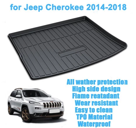 Brand: Unbranded Country/Region of Manufacture: China Feature1: Liners raised and strengthened lip for protects carpet floor Type: Cargo Liner Modified Item: No Feature3: All weather safe and reliable protection Color: Black Number of Pieces: 1 Material: TPO Fitment Type: Direct Replacement Feature2: Easy to clean and waterproof Manufacturer Part Number: Does Not Apply Placement on Vehicle: Cargo/Trunk For Car Years: Jeep Cherokee 2014-2018