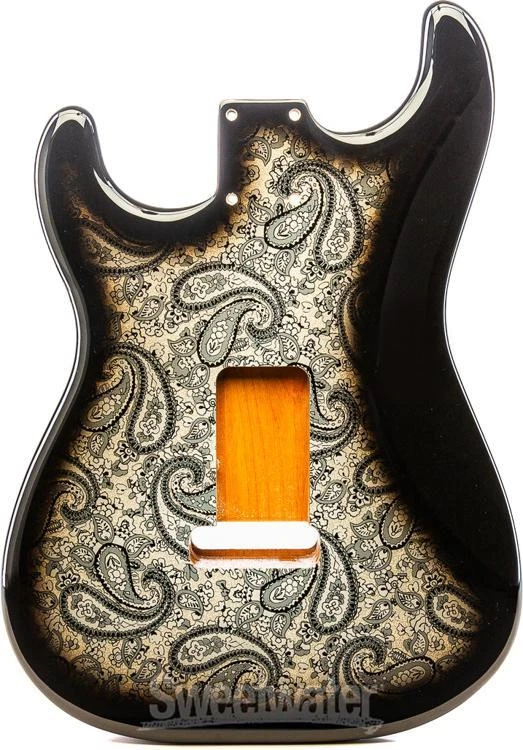 Build Your Dream Guitar! The first step to crafting the guitar of your dreams is deciding on a quality body, and the AllParts Primo Replacement Stratocaster Body is a fitting canvas for your custom build. Made from quality alder and featuring pre-shielded cavities and a polyurethane finish, this high-performance chassis includes HSH pickup openings with the ability to customize your configuration with P-90 or traditional Strat-style single-coil pickups in the neck and bridge, a Strat-style tremolo-compatible bridge, and a rounded heel pocket to fit both Strat- and Jazzmaster-style necks. The ambitious DIY guitar builders here at Sweetwater appreciate that this replacement body is also routed for standard Stratocaster electronics, making installation of the blade-type switch, one volume pot, two tone pots, and the output jack a breeze. For those looking to join the ranks of Strat-rockin’ guitar icons such as David Gilmour, Jimi Hendrix, and Jeff Beck, the Primo Replacement Sweetwater is an Authorized AllParts Dealer Genuine New Item Sweetwater's 2-year warranty AllParts Primo Replacement Stratocaster Body - Black Paisley Alder Stratocaster Body with HSH Pickup Openings and Strat-style Tremolo - Black Paisley Build Your Dream Guitar! The first step to crafting the guitar of your dreams is deciding on a quality body, and the AllParts Primo Replacement Stratocaster Body is a fitting canvas for your custom build. Made from quality alder and featuring pre-shielded cavities and a polyurethane finish, this high-performance chassis includes HSH pickup openings with the ability to customize your configuration with P-90 or traditional Strat-style single-coil pickups in the neck and bridge, a Strat-style tremolo-compatible bridge, and a rounded heel pocket to fit both Strat- and Jazzmaster-style necks. The ambitious DIY guitar builders here at Sweetwater appreciate that this replacement body is also routed for standard Stratocaster electronics, making installation of the blade-type switch, one volume pot, two tone pots, and the output jack a breeze. For those looking to join the ranks of Strat-rockin’ guitar icons such as David Gilmour, Jimi Hendrix, and Jeff Beck, the Primo Replacement Stratocaster Body can get you started in the right direction — the rest of the journey is up to you! AllParts Primo Replacement Stratocaster Body Features: Made from alder with a polyurethane finish Patterned after the Player Series Stratocaster HSH pickup cavities with P-90 and single-coil pickup versatility in the neck and bridge openings Fits most trem blocks, including Strat-style tremolo Rounded heel pocket for Strat- and Jazzmaster-style necks Volume and tone potentiometers and blade-type switch opening Shielding paint on pickup and control cavities to reduce RF interference Specification Detail Type PRiMO Replacement Guitar Body Intended Instrument Stratocaster, HSH Pickup Configuration Material Alder Finish Black Paisley, Polyurethane Dimensions 2.1875" Heel Pocket, 25.5" Scale Length RETURN INFORMATION We want you to be completely happy with your purchase from Sweetwater. If you are not satisfied with your product, you may return it for a refund of the purchase price within 30 days. If your purchase was eligible for Free Shipping, the shipping cost will be deducted from your credit or refund. Returns must be in the complete and original packaging with all accessories and complete documentation (Owner's Manual, warranty card, quick start guides, etc.), show no signs of wear or use, and include a Return Authorization number or be subject to a restocking fee.