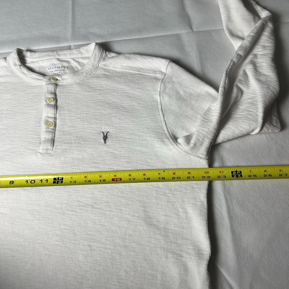 AllSaints Long-Sleeve Henley Shirt Men's Size Large White Regular Fit **this shirt does have stains SKU A-66