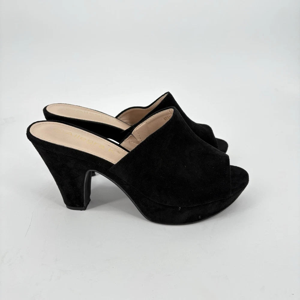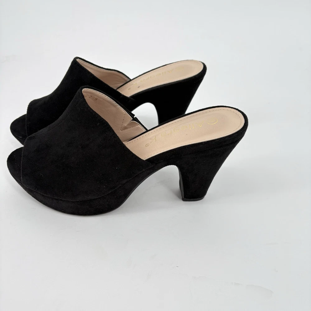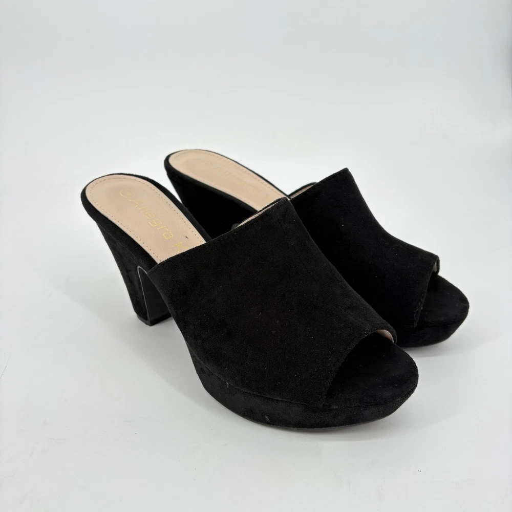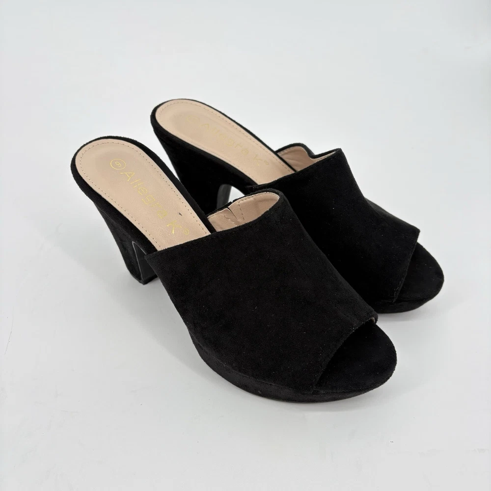 Pattern: Solid Closure: Slip On Occasion: Casual, Christening, Formal, Party/Cocktail, Wedding US Shoe Size: 9 Toe Shape: Open Toe Outsole Material: Faux Suede Personalize: No Department: Women Insole Material: Faux Leather Handmade: No Heel Height: Ultra High (4 in & Higher) Type: Heel EU Shoe Size: 39 Modified Item: No Brand: Allegra K Seller Notes: “Excellent Condition” Style: Clog Shoe Width: Standard Color: Black AU Shoe Size: 9 Upper Material: Faux Suede Customized: No Theme: Classic Season: Fall, Spring, Summer, Winter Lining Material: pu rubber UK Shoe Size: 7 Country/Region of Manufacture: Unknown Features: Breathable Heel Style: Cone Model: Open Toe