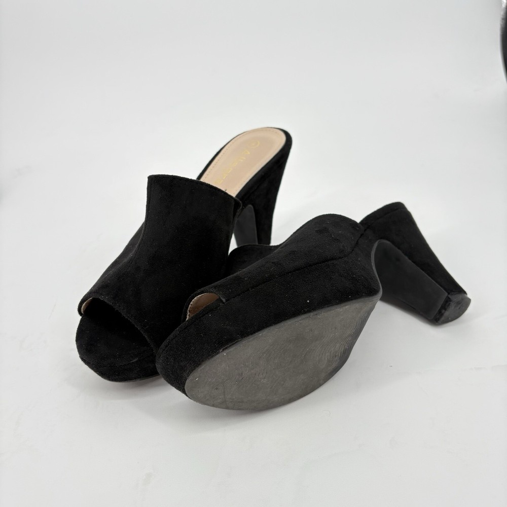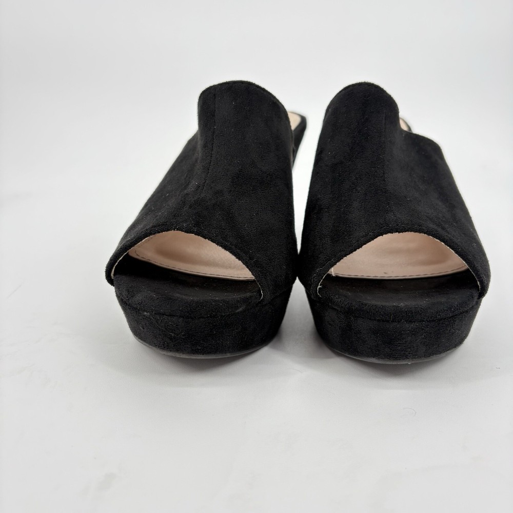 Allegra K Black Suede Block Heel Platform Sandals Womens Size 9 Open Toe