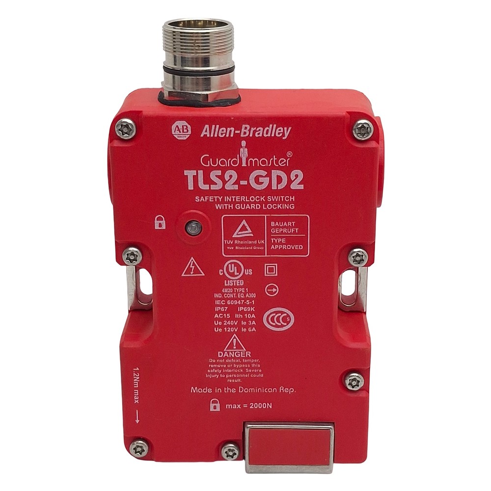 Ship This Item on your Account ! Need this item Next Day? Select free shipping and provide your account number during checkout. Available Carriers UPS DHL FedEx We ship same day on nearly all items! If you do not have an account No Worries! Select the shipping tab above for options and rates. Next Day Automation is NOT an authorized distributor for Allen Bradley, GuardMaster . The Original Manufacturer's warranty does not apply. This is a surplus item. From our inventory we are selling a Allen Bradley 440G-T27241 TLS2-GD2 GuardMaster Safety Interlock Switch, *No Key*. Specifications: Model # : 440G-T27241, TLS2-GD2 More Information : Allen Bradley TLS2-GD2 GuardMaster Safety Interlock Switch Solenoid Voltage: 24VDC Solenoid Contacts: 1NC, 1NO Aux Contacts: 2NC, 1NO Contact Rating: 63V 6A Lock Force: 2000N Actuator: Fully-Flex Electrical Connection: 12-Pin M12 Male Item Specifics & Seller Notes: Unit Does Not Come With A Key. ST18-1-J SKU# SB-213162 User Agreement By bidding on and/or buying this item from Next Day Automation, you are agreeing to the following policies: -The buyer accepts all import taxes and duties for international orders. -Next Day Automation, nor it's employees will be held responsible for accidental or intentional use or misuse occurring with this item. -Any returns on items purchased from us must be addressed within 30 days of receiving the item. Contact Messaging Contact us through eBay messages. Address Next Day Automation 9472 Hemlock Lane N. Maple Grove, MN 55369 USA Office Hours: Monday - Friday 7:30am - 4:00pm CT Additional Info Please allow a reasonable amount of time for your package to be shipped and arrive. Keep in mind that we are shipping industrial items that may require additional time to ensure safe and proper packaging. Open Monday through Friday, 7:30am-4:00pm. Our cut-off time for shipping an item is 3:45PM CT. If your payment processes after that time, it will be shipped the following business day. Powered by SixBit's eCommerce Solution