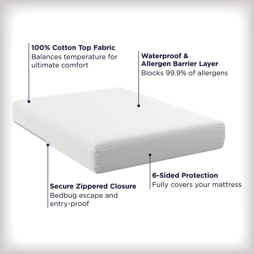AllerEase Ultimate Allergy Protection and Comfort Zippered Mattress Protector, Full Product Details Size: Full Brand: Aller-Ease MPN: 3512AMZ UPC: 022415035125 EAN: 0022415035125 Brand: Aller-Ease Color: White Size: Full Fabric Type: 100% Cotton Special Feature: Premium,Waterproof Brand: Aller-Ease Color: White Size: Full Fabric Type: 100% Cotton Special Feature: Premium,Waterproof Closure Type: Zipper Product Care Instructions: Machine Wash Water Resistance Level: Waterproof Age Range (Description): Child Material: Cotton Model Name: Ultimate Allergy Protection and Comfort Zippered Mattress Protector Number of Items: 1 Manufacturer: American Textile UPC: 022415035125 Global Trade Identification Number: 25 Product Dimensions: 5.1 x 8.3 x 11.95 inches Item Weight: 2 pounds Item model number: 3512AMZ Is Discontinued By Manufacturer: No Assembly required: No Warranty Description: 10 year warranty. Batteries required: No Import: Imported 100% Cotton Imported With Polyester Sidewalls ADVANCED ALLERGY PROTECTION: AllerEase mattress protectors have tightly woven, expertly-designed fabric to prevent 99.9% of unhealthy household particles from collecting in your mattress. WATERPROOF DESIGN: This mattress protector features a waterproof design that prevents liquids from contaminating and ruining your mattress. TEMPERATURE BALANCING: Technology wicks moisture to help keep you comfortable. A PERFECT FIT: Our exclusive FlexFit technology provides a perfectly snug fit with a soft, quiet cover that can help you sleep comfortably through the night. ALLERGIST RECOMMENDED: All AllerEase products provide clean allergy relief, are machine washable, and have a Lifetime limited warranty. EASY CARE INSTRUCTIONS: Machine wash warm, only non-chlorine bleach when needed, tumble dry on delicate/low heat 60+-6 C or 140+-10 F. Max dryer exhaust temperatures vary by brand. It is recommended that the lowest dryer temperature be utilized and that the item be removed when it is dry rather than when the dryer stops running, do not iron. From the 1 best selling allergy bedding brand, AllerEase Ultimate delivers the clean, healthy night's sleep that we all deserve. Featuring premium materials and an expertly-designed construction, Ultimate prevents dust, pollen, and pet dander from collecting in your mattress. With a soft waterproof layer to protect from spills, stains, and odors, Ultimate also includes specialized seams and zippers making it impenetrable. Together with a temperature balancing finish to keep you cool and dry, a luxurious cotton top, machine washability, and a lifetime warranty, Ultimate offers unmatched comfort, quality, convenience, and value for you and your family.
