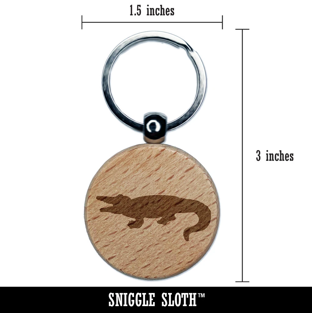Alligator Crocodile Solid Engraved Wood Round Keychain Tag Charm
