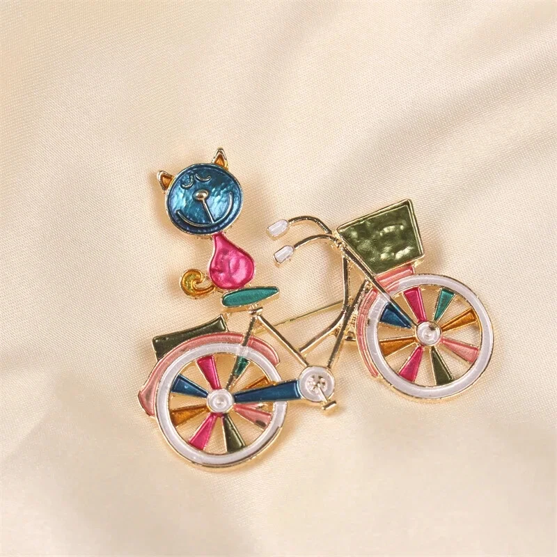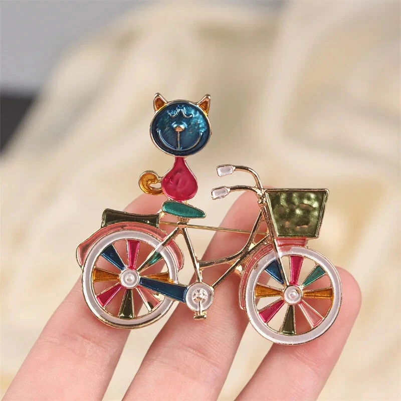 Alloy Cat Cycling Brooch Funny Cute Fashion Accessories Clothing Corsage Pins