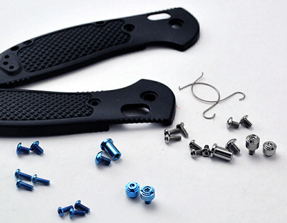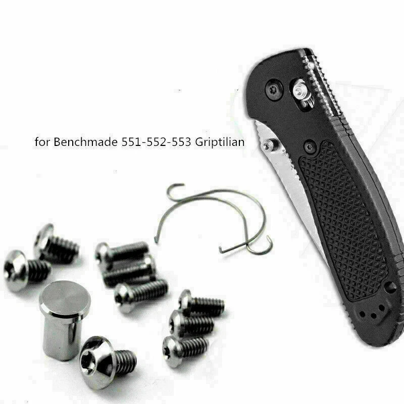 Product Description If you have any questions, please contact customer service first, do not open disputes easily, thank you! Feature: Only suitable for genuine standard version Benchmade 551-552-553 Griptilian. 1 set * Spindle, 3 * Cutter back screw, 3 * Back clamp screw, 4 * Cutter middle screw, 1 * Pair of springs Material: Titanium alloy Package included: 1 Set * Screws (Not include cutter) Notes: 1. The tools sold in this shop are all produced by our own factory, not original (Genuine) parts. 2. Please allow minor errors due to manual measurement. 3. The colors may have difference due to the different display, please understand. About Us We accept all payments authorized by eBay. powered by