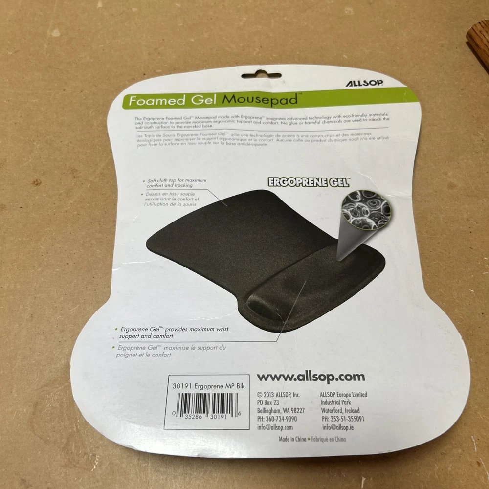 Enhance your computing experience with this Allsop Gel Mouse Pad and Wrist Rest Combo. Designed to provide optimal comfort and ergonomic support, this mouse pad/wrist rest combo is perfect for anyone who spends long hours working on their computer. The black color of the pad complements any computer setup, making it a versatile addition to your workspace. This high-quality mouse pad and wrist rest combo is made by Allsop, a trusted brand in the computer accessories industry. The item is brand new in box (NIB), so you can rest assured that you are getting a top-of-the-line product. Upgrade your computing setup with this Allsop Gel Mouse Pad and Wrist Rest Combo today! Fr