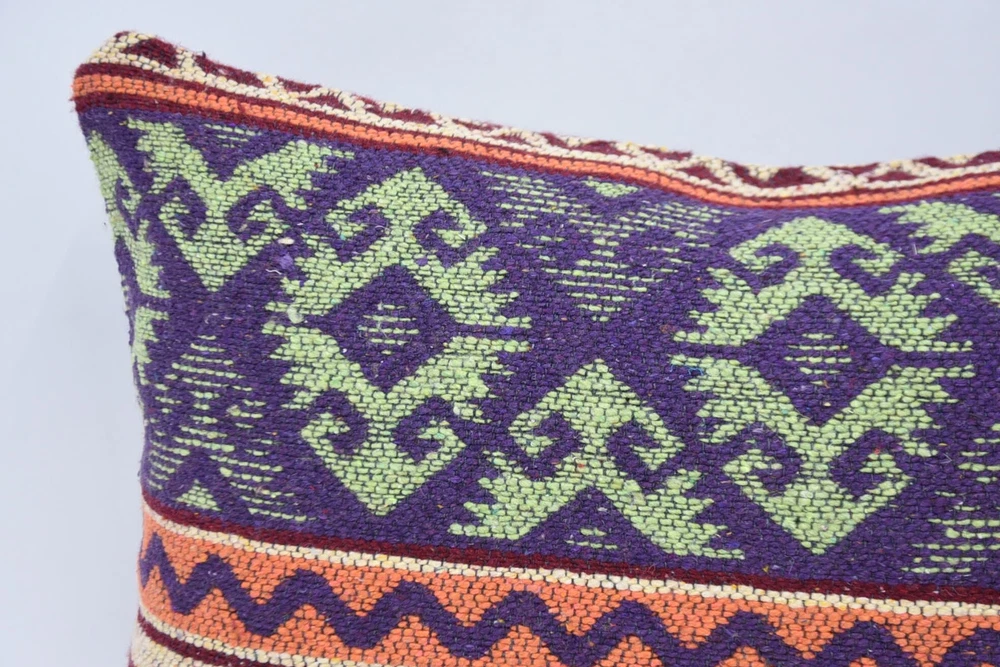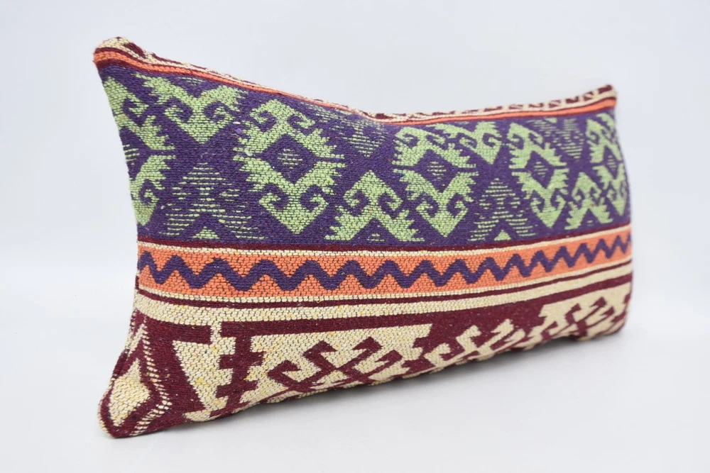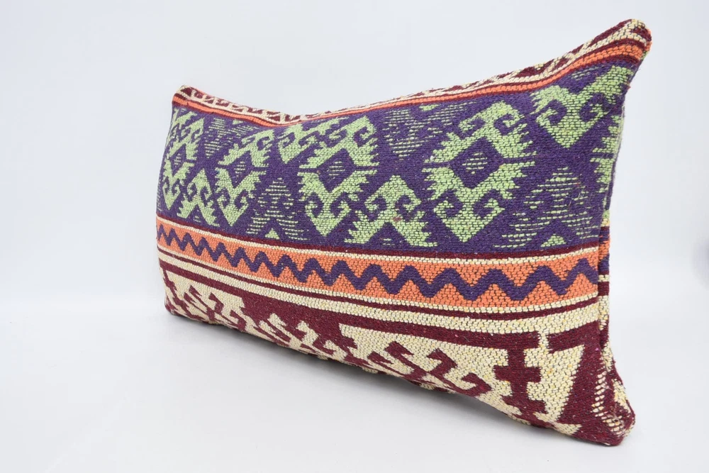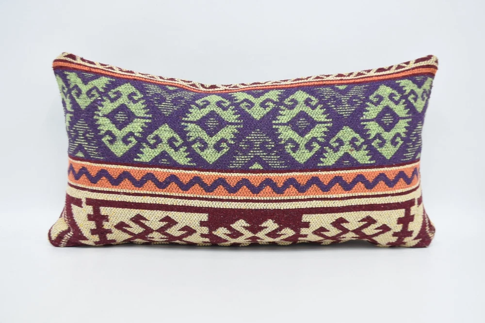 Almohada corporal, cojín púrpura de 12""x24"", almohada Kilim, almohada para sofá