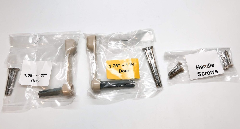 Handle Sets 2-piece Inside Handle Handle set comes with 2 different thumb latches for thicker door option Handles can be used for options for Milgard, Plygem, and ETC. Works with STB Sliding Glass Patio Door Motise Lock Powdercoat and architectural finishes available 4 15/16 Screw Hole Distance Not included schlage cylinder with key because it is not a locking version. Sliding Patio Door Hardware Handle Set Kit
