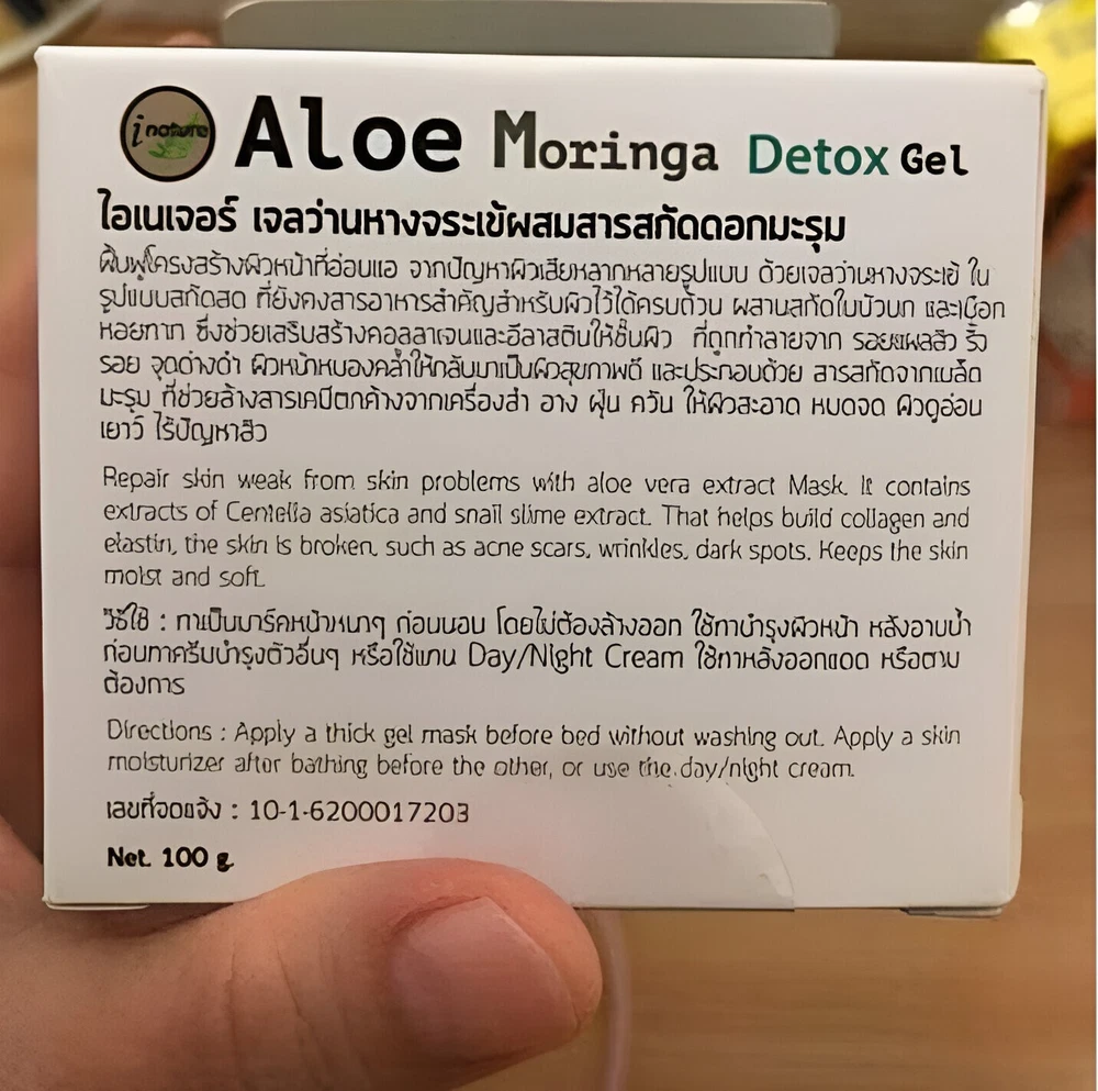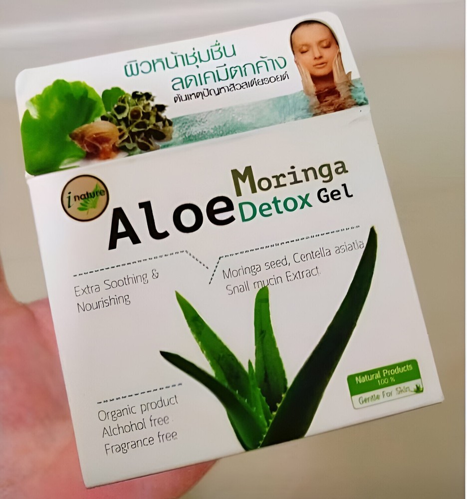 INature Thai Aloe Vera Moringa Gel Soothing Hydration Overnight Mask x2 Brand : INature Condition : New, 💯% Authentic. Size: 100g Quantity : 2 Boxs Thai FDA No.: 13-1-6600035097 Looking for a gentle, effective solution for tired or reactive skin? INature Aloe Moringa Gel is designed for those seeking a naturally inspired skincare option that provides daily hydration, post-sun care, and overnight recovery — all in one. Formulated with skin-friendly ingredients like aloe vera, moringa seed extract, centella asiatica (cica), chamomile, and snail secretion filtrate, this multi-purpose gel helps to comfort sensitive skin, support hydration, and improve overall texture and radiance. Why Choose INature Aloe Moringa Gel? Ideal for skin under stress: Helps balance skin that has been exposed to sun, pollution, or frequent cosmetic use. Great for sensitive and combination skin: Lightweight formula that absorbs quickly without clogging pores. Multi-use versatility: Use it as a daily moisturizer, calming after-sun gel, or overnight sleeping mask. Naturally inspired ingredients: Made with plant-based extracts and free from parabens, alcohol, and heavy fragrances. Visible skin improvement: Regular use helps reduce the appearance of uneven skin tone and dryness. Recommended For: Individuals with sensitive, easily irritated skin Those recovering from the effects of strong cosmetic or skincare products People looking for a clean, simple skincare routine with multi-use benefits Anyone who prefers lightweight hydration and botanical-based care How to Use : Apply a generous amount on cleansed skin. For daily use, apply a thin layer and let it absorb. For overnight care, apply a thicker layer as a sleeping mask and leave on until morning. No rinsing required. ✈️✈️Shipping & Handling✈️✈️ ✈️✈️✈️Ships from Thailand ( with tracking ) Handling time: 3–5 business days. Estimated delivery: 11-23 business days depending on your location. Thank for visiting and shopping with us🙏🙏🙏