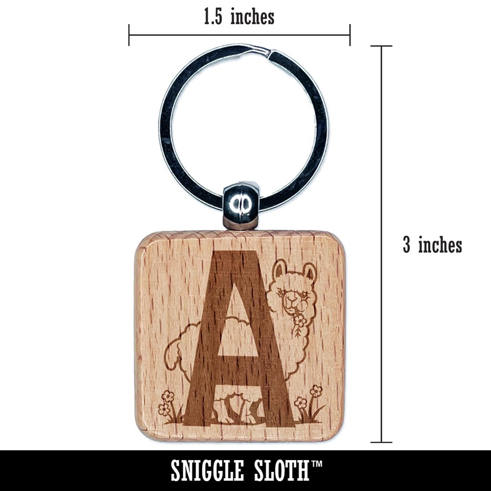 Alpaca Letter A Animal Alphabet Engraved Wood Keychain Charm