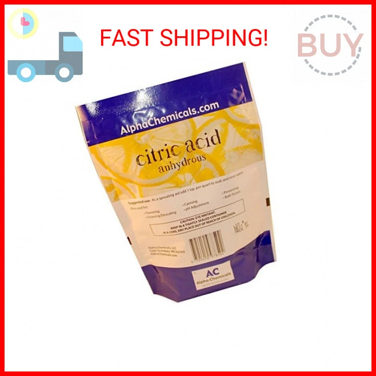 100% Genuine Free Shipping Gift Cards WELCOME TO THE SHOP Alpha Chemicals Non-GMO Project Verified Citric Acid - 1 Pound – Organic - Approved for use in organic foods and GMO-free - Premium Food Grade Citric Acid - Non-GMO Project Verified - Used to add sour flavor to candies and other foods - Great for descaling dishwashers, coffee pots, water faucets, etc. Payments We accept the following payment methods PayPal Please pay as soon as possible after winning an auction, this will allow for quicker shipping times! Returns We accept returns. You can return unopened items in the original packaging within 30 days of your purchase with receipt or proof of purchase. If 30 days or more have passed since your purchase, we cannot offer you a refund or an exchange. Upon receipt of the returned item, we will fully examine it and notify you via email, within a reasonable period of time, whether you are entitled to a return. If you are entitled to a return, we will refund your purchase price and a credit will automatically be applied to your original method of payment. Only regular priced items may be refunded. Sale items are non-refundable. Shipping Shipment processing time All orders are processed within 2-3 business days. Orders are not shipped or delivered on weekends or holidays. If we are experiencing a high volume of orders, shipments may be delayed by a few days. Please allow additional days in transit for delivery. If there will be a significant delay in shipment of your order, we will contact you via email or telephone. Shipping rates & delivery estimates Shipping charges for your order will be calculated and displayed at checkout.