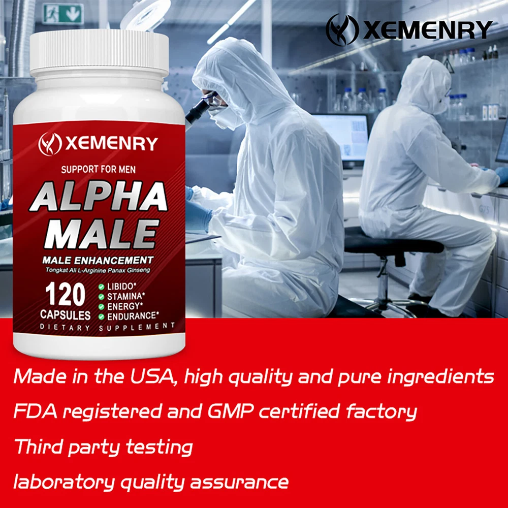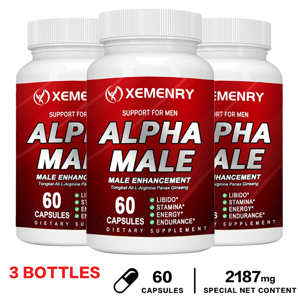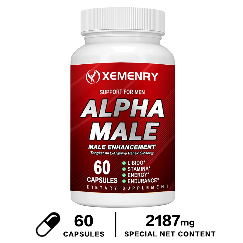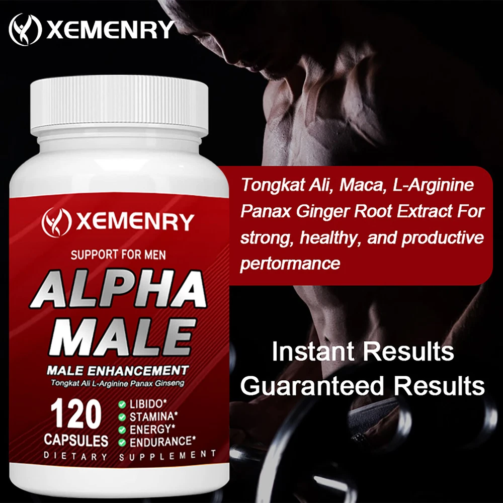 Effects: Testosterone Booster, Energy & Endurance Ingredients: Maca, Ginseng, Zinc, L-Arginine Directions: Take 2 capsules once daily after a meal. Shipping: Ships within 48 hours on working days. Shelf life: 2 years Description: Testosterone Booster - Alpha Male is designed for professional exercise enthusiasts and athletes focused on maximizing strength and results in their workouts. Provides you with the stamina, confidence and improved circulation you need to perform better physically. And boosts free and total testosterone levels so you feel like you're at your best! Increase Vitality: Boosting testosterone levels is an ideal way to restore your masculinity as you age. Alpha Male's premium blend to help enhance your performance and restore your manhood, helping you gain greater lean muscle mass and energy levels. BUILD MUSCLE AND STRENGTH: Our products are focused on enhancing athletic performance, promoting muscle growth, improving quality by reducing fatigue and increasing endurance. This will allow you to achieve peak performance, build muscle, work harder, and train for longer. Document