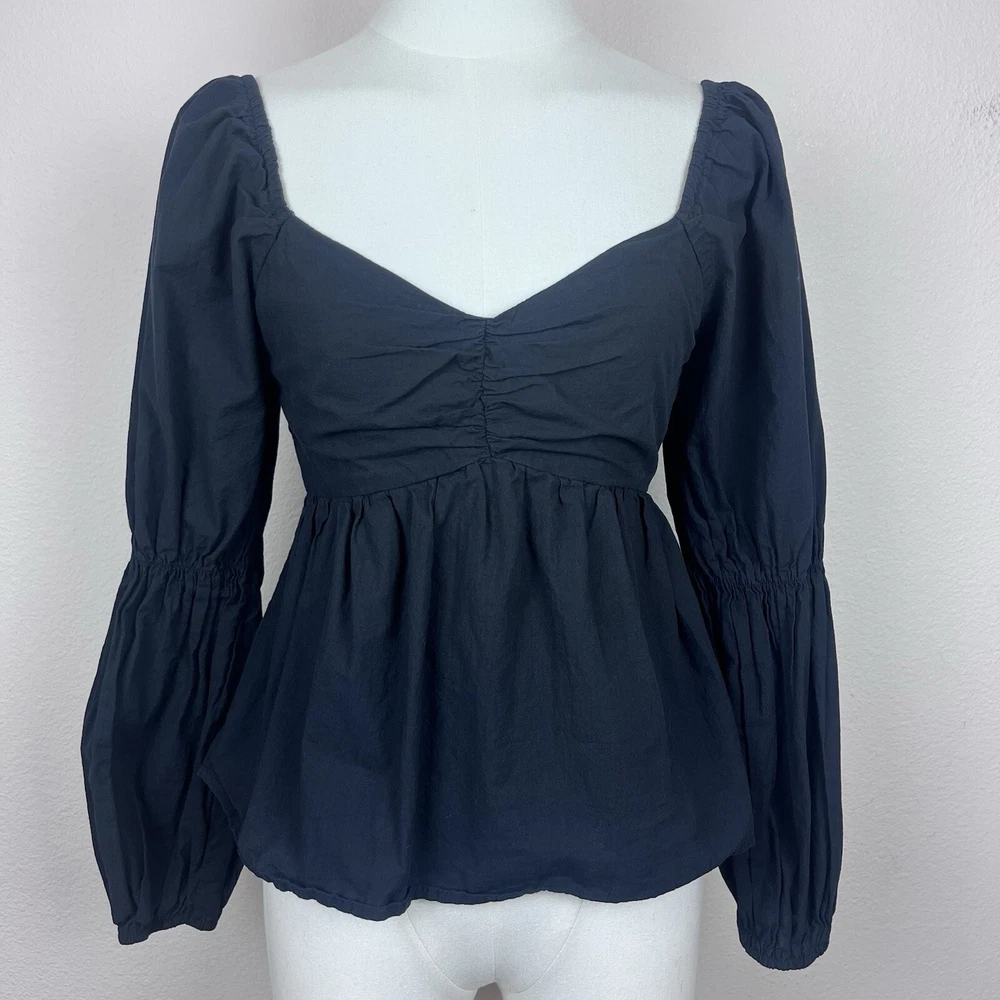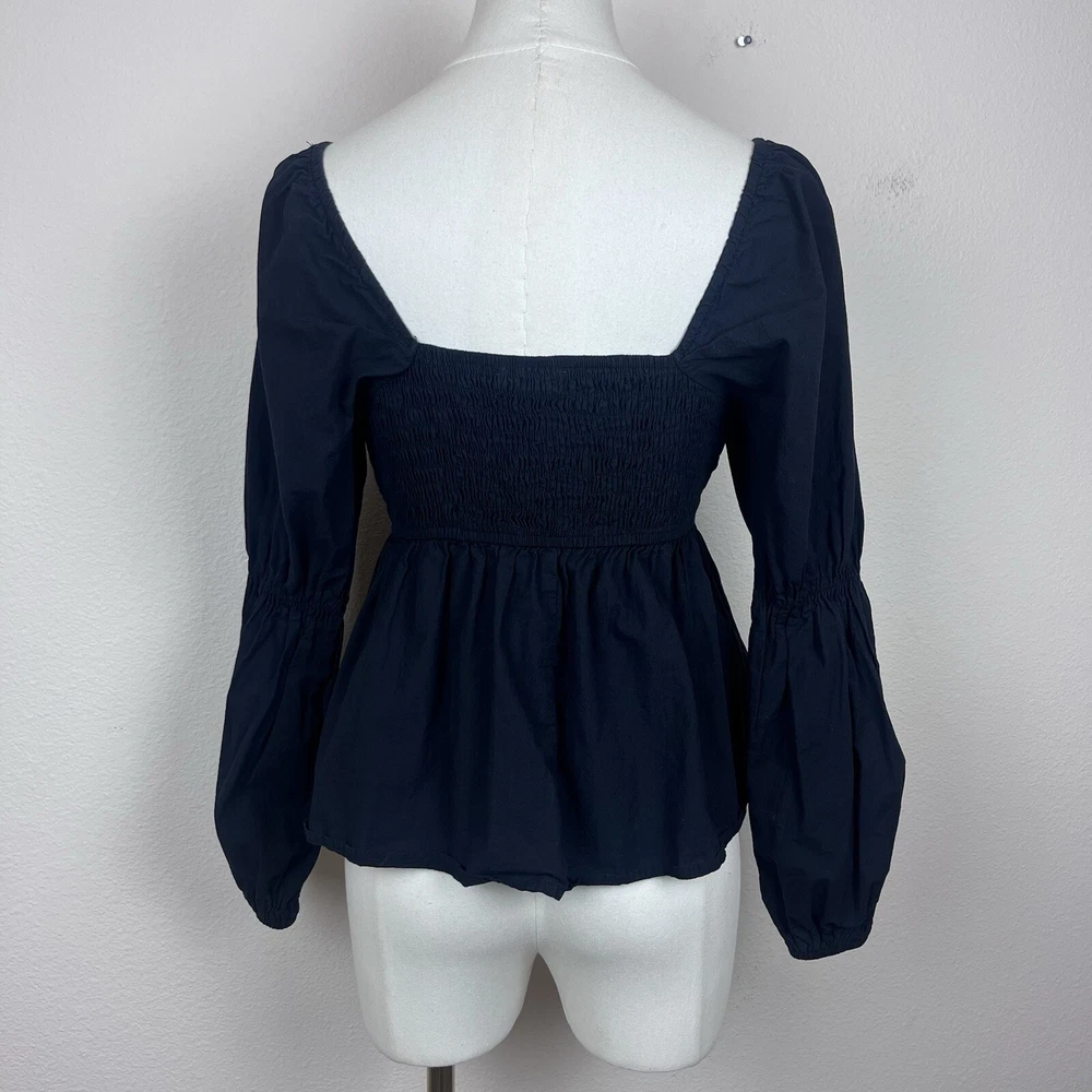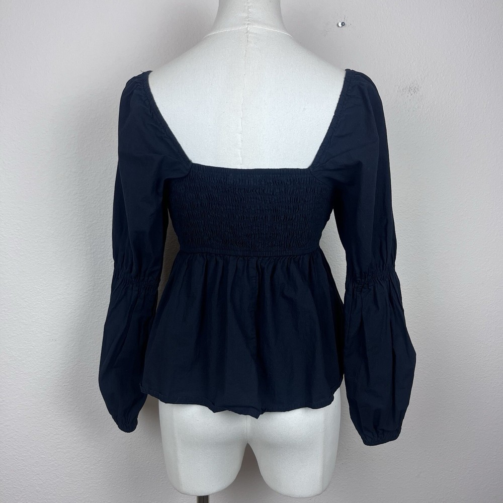 Altard State Womens Shirt Cotton Cropped Peplum Babydoll Smocked back Long sleeves Sweetheart neckline Preppy Gothic Boho Good preowned condition Measurements in photos Size S