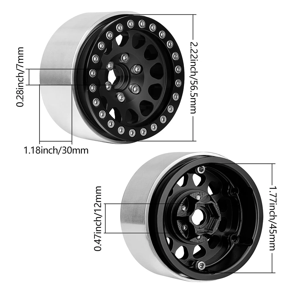 Note:The color of the item may vary slightly due to photography and your own computer /Please allow some little manual measurement error. Customer Satisfaction If you are not completely satisfied with our products, please do not hesitate to us to request a or exchange! Note:Check your specific model's manual for compatibility,or us. ✔High-Quality Materials: These 1.9 beadlock wheels are constructed from durable aluminum, ensuring excellent performance and longevity for your RC crawler adventures. ✔Universal Compatibility: Designed to fit 1/10 scale RC crawlers, these wheels are with Traxxas TRX4, Axial SCX10, Redcat Gen 8, and RC4WD popular models, offering versatility for various vehicles. ✔Beadlock Design: The beadlock rings can securely hold the tires in place, preventing them from coming off during intense off-road driving, for tackling challenging terrains, giving you added peace of mind during rough terrains. ✔Stylish Appearance: With their sleek design, these wheels not only deliver great functionality but also add a touch of flair to your RC crawler's overall appearance. ✔4-Pack