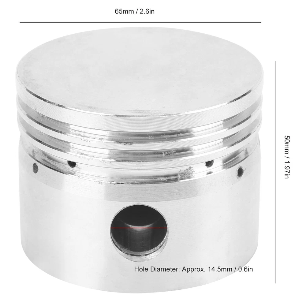 Feature: 1. Adopts die‑casting technology, streamlined design, beautiful appearance, and excellent heat dissipation. 2. After heat treatment and surface quenching, it has excellent comprehensive mechanical properties. 3. Piston replacement parts, suitable for piston air compressors and air pump pistons. 4. Selected high‑quality aluminum materials, durable, corrosion‑resistant and impact‑resistant. 5. Simple and compact structure, light weight, easy to install and use, long service life. Specification: Item Type: Engine Piston Material: Aluminum Purpose: Piston Air Compressor, Air Pump Piston Length: Approx. 5mm / 0.2in Diameter: Approx. 65mm / 2.6in Hole Diameter: Approx. 14.5mm / 0.6in Package List: 1 x Piston Note: 1. Please allow 0‑1 inch error due to manual measurement. Thanks for your understanding. 2. Monitors are not calibrated same, item color displayed in photos may be showing slightly different from the real object. Please take the real one as standard.