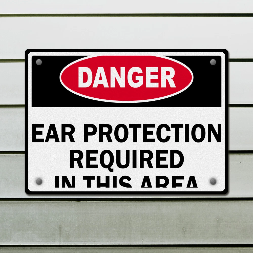 Signs Outdoor/Indoor Metal Personalized sign Protect yourself and avoid accidents with our metal warning sign. Communicate instructions and safety warnings efficiently to others. The text reads: danger ear protection required in this area . Perfect for businesses looking for: Half Way Border metal signs, Eye & Ear Protection Required cut signs, signs, wall signs, or yard signs. Make sure your message or instruction catches the attention and is being seen as well as respected. Also available in different shapes and sizes, you will always find the perfect fit for you! Our designs are professionally printed with state-of-the-art equipment guaranteed to last for years. We have more than 12 years of experience in the printing industry to offer you stunning detail and rich lifelike colors. All prints are carefully made in our lab in Tampa, Florida. BEST METAL SIGN ON THE MARKET! **PREMIUM QUALITY: Our industrial metal signs are made of durable .040IN high quality aluminum that will last for decades. Very clear, bold, easy to read lettering that can be read from the distance. **INDOOR & OUTDOOR: Our aluminum yard metal signs can be used indoor as well as outdoor. They can be easily mounted on any surfaces such as walls, doors or fences with zip ties, screws or nails (NOT INCLUDED). **EASY INSTALLATION: Our indoor and outdoor signs come with pre-drilled holes for an easy installation on any surfaces. We left you the easy part... You just have to make sure it is straight! **WEATHERPROOF: Our personalized signs are especially treated against UV, humidity and water thanks to our ink curation. As a result, they will not rust or fade which make them perfect to use indoor and outdoor. **UNIQUE DESIGNS AND GRAPHICS: We put a lot of thought and time in our design process. We are proud to offer you the best selection of informative signs graphic designs, as well as the best variety of safety and ansi-iso compliant designs. Whether you are a business owner or a homeowner, you will be 100% satisfied with our metal signs. PAYMENT TERMS