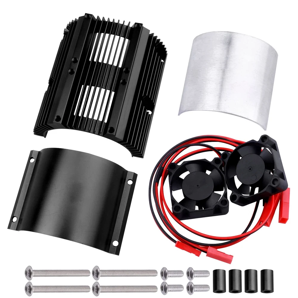 Good Quality The RC Motor Radiator Fit 40mm 41mm 42mm Electric Engine Motors Compatible with 1/10 Scale Traxxas E-Revo Summit Monster Truck, and other 1/10 1/8 Models that has 40-43mm Diameter Motor 2 Motor Cooling Fans, perfect heat dissipation effect which can effectively prevent the motor from overheating. The RC Motor Heatsink made of quality Aluminum, perfect heat dissipation effect, durable, wear-resistant Quality Guarantee, 100% Customer satisfaction is our priority, if you have any issue about this items, please feel free to contact us.