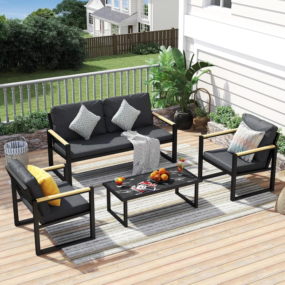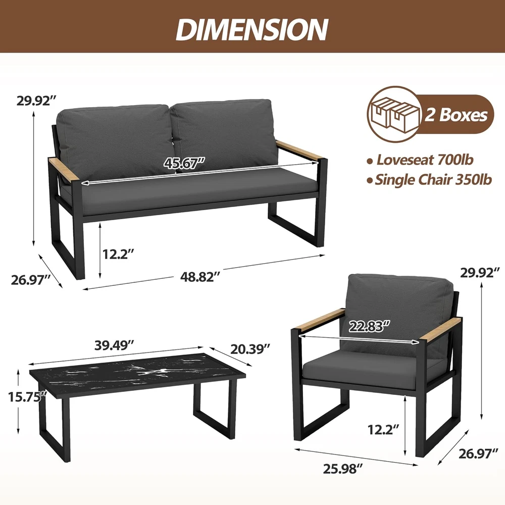 Store New Arrivals Add to Favorite View Feedback Contact Aluminum Patio Furniture Set, 4 Pieces Patio Furniture with Coffee Table Set, Outdoor Modern Patio Conversation Sets with Removable Cushions Description Item dimensions L x W x H 46.85 x 25.98 x 10.63 inches Item Weight 732 Pounds Assembly Required Yes Brand Name Raysfung Item Dimensions 46.85 x 25.98 x 10.63 inches Color Grey Material Type Aluminum Brand Raysfung Material Aluminum Required Assembly Yes Item Weight 73.2 Pounds Shape Rectangular Manufacturer Raysfung Premium Aluminum Frame: Our outdoor patio furniture set is made of high quality aluminum, which is more durable, rustproof and corrosion resistance while remaining lightweight.It's designed to withstand all weather conditions and perfect for outdoor use. High Load-Bearing Capacity: Aluminum Frame loveseat built with excellent weight capacity of 700lbs and the single armchair can hold up to 350lbs, providing reliable seating for outdoor. And the coffee table and seat are equipped with adjustable feet, which helps to enhance stability and protect floor from scratching, is suitable for any surface. Comfortable Cushion: The cushion cover is made of breathable olefin fabric that is water-repellent, UV protection and fade-resistant. With zipper design, cushion cover is removable and washable. Ergonomic Backrest:The ergonomic backrest provides optimal support for a more comfortable and relaxing sitting experience.The modern aluminum furniture set is the great addition for your backyard,patio, garden. Easy to Assemble:Our patio furniture set come with detailed installation instructions. If you have any question with 4 piece outdoor aluminum patio conversation set, please let us know and we will resolve for you. Product Description ABOUT US We offer the best prices around on high quality products. Our E-store includes media such as books, movies, music and games while offering electronics, toys, sporting apparel, clothing, tools, general home, garden items and more. SHIPPING We are always working hard to ensure your package arrives as soon as possible. Please understand that some factors like weather, high postal traffic, and the performance of shipping companies are outside of our control. For shipping outside of the continental USA, we only use eBay's Global Shipping Program.The item is shipped to KY and then sent to the rest of the world. International customers are responsible for all duties and taxes. Continue to check out in order to calculate costs for shipping the item to your country. Messages regarding eBay's Global Shipping Program MUST be directed at eBay EXCLUSIVELY. RETURNS We offer a 30-Day Return Policy on items which you are not completely satisfied with. You have the option for a full-refund or an exchange of the item. No returns are available on items shipped outside of the USA. PAYMENT We accept PayPal. CONTACT US This page content is yet to come Please ad us to your favorite seller and visit again later Thank You CUSTOMER SATISFACTION We try our very best to make sure every customer is completely satisfied. If there's a problem, message us! We're happy to help. WE ACCEPT Copyright © 2021 AutoDS. | All Rights Reserved